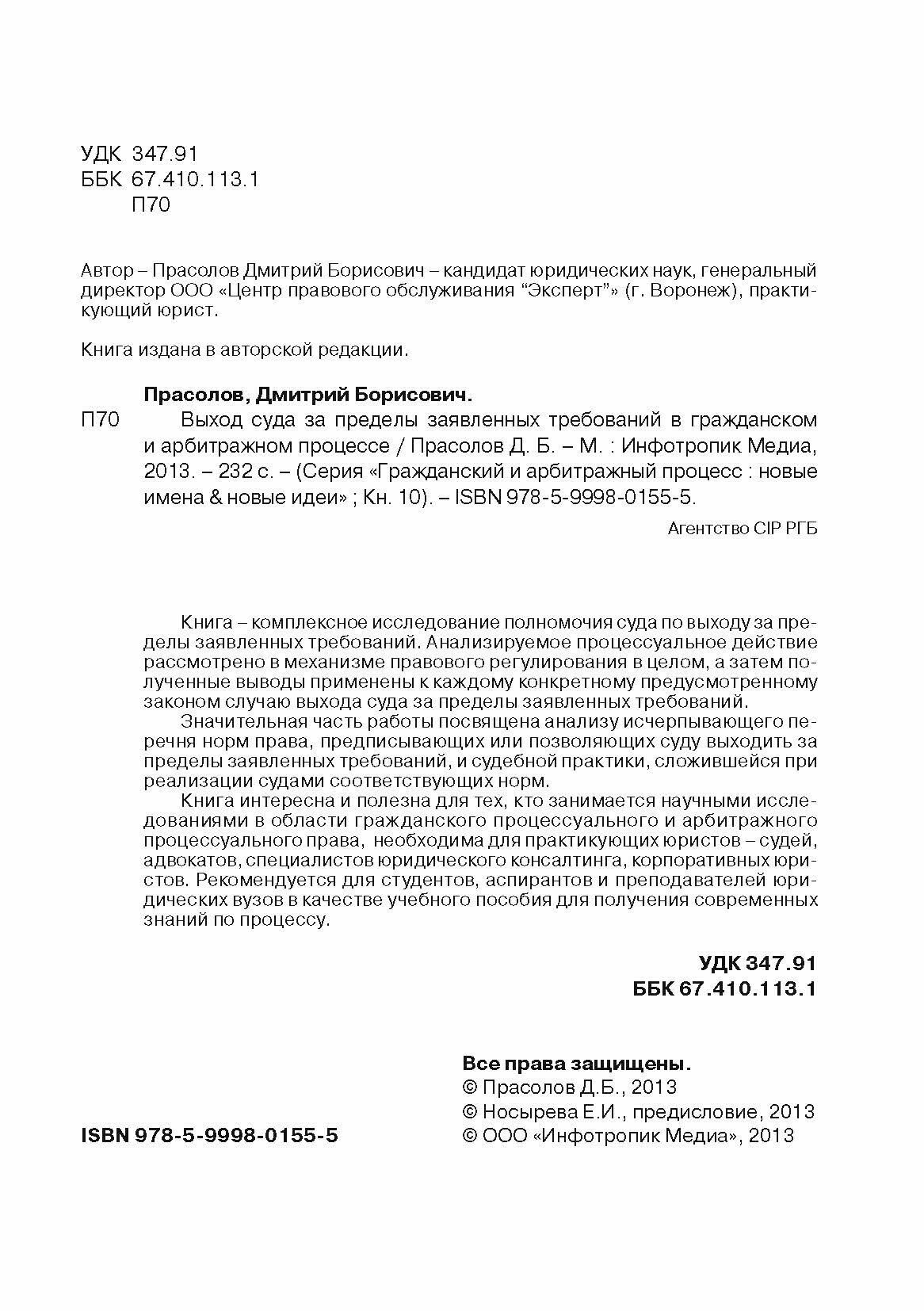 Выход суда за пределы заявленных требований в гражданском и арбитражном процессе (Прасолов); Инфотропик Медиа, 2013
