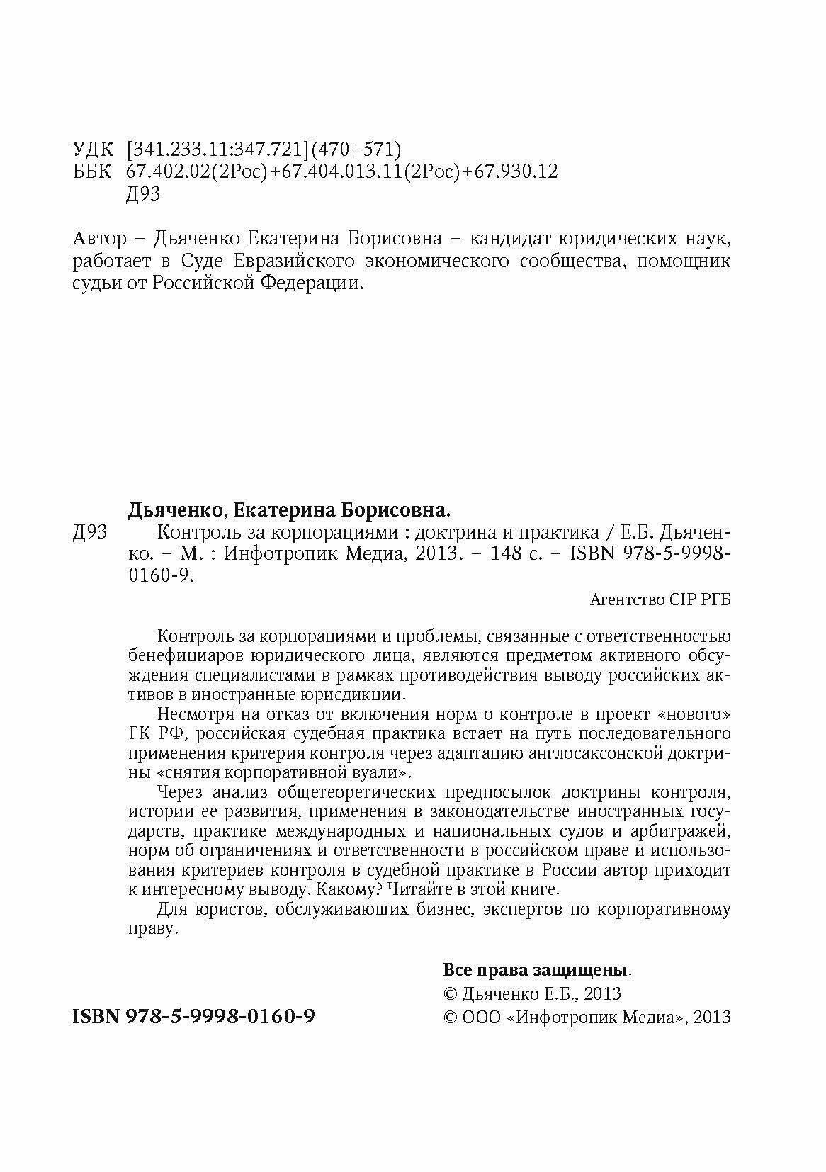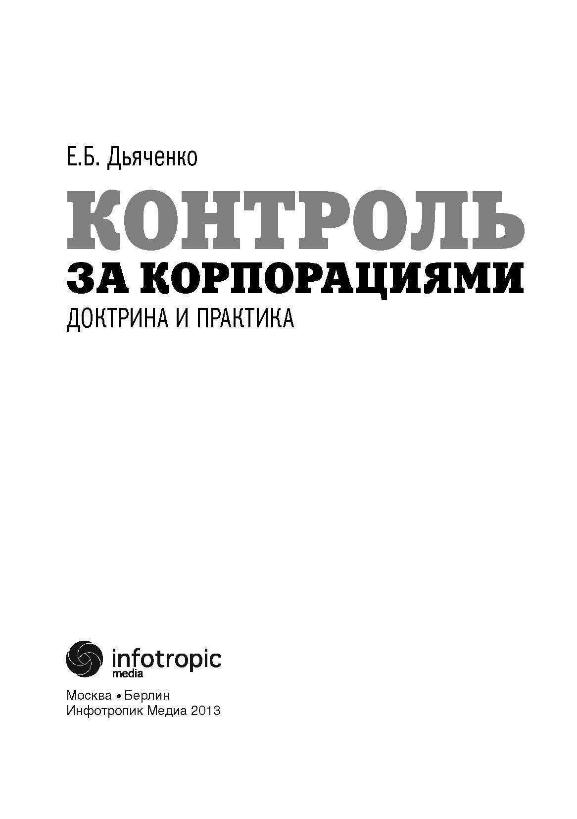 Контроль за корпорациями: доктрина и практика (Дьяченко Екатерина Борисовна); Инфотропик, 2013