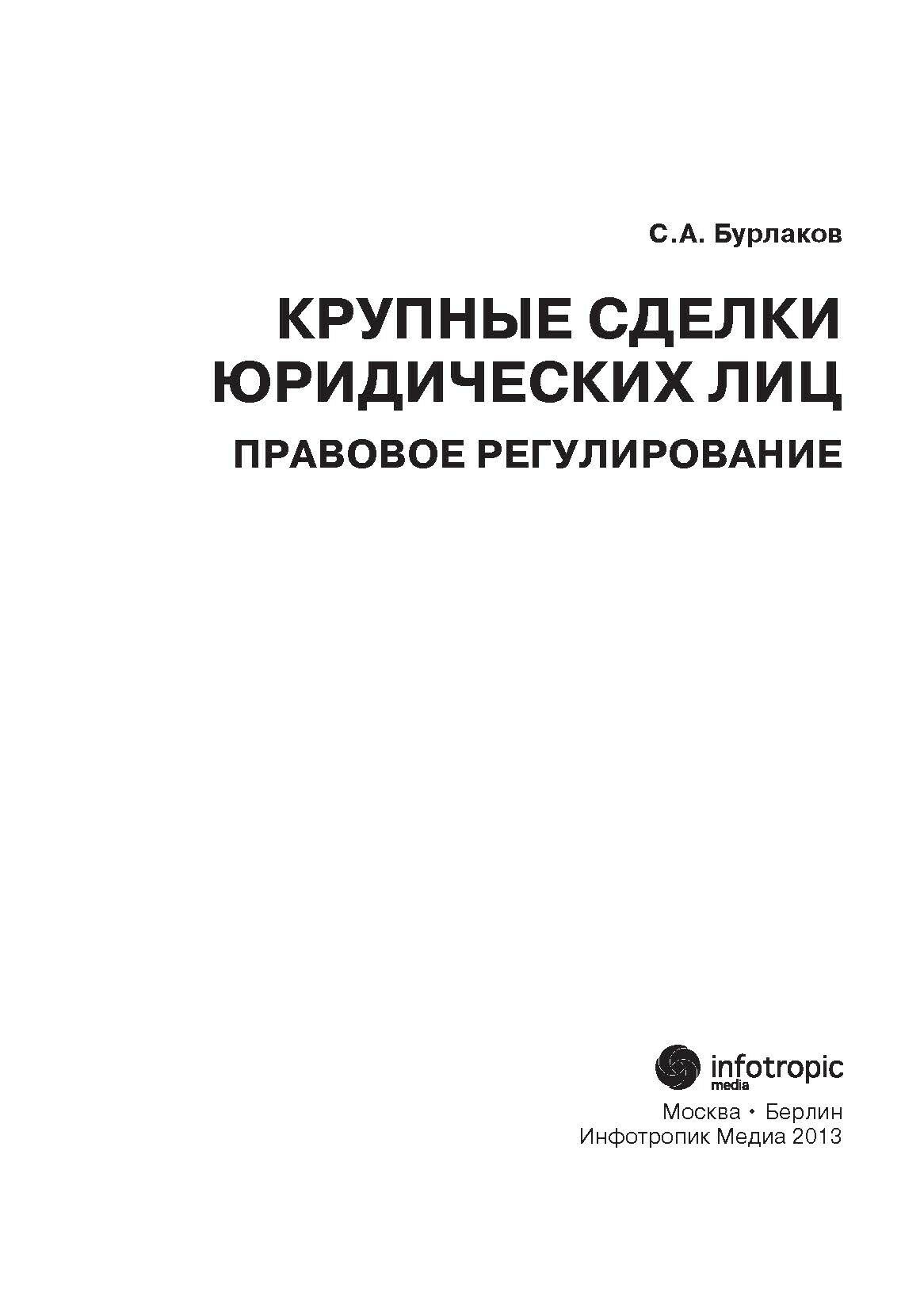 Крупные сделки юридических лиц: правовое регулирование (Бурлаков Сергей Алексеевич); Инфотропик, 2013
