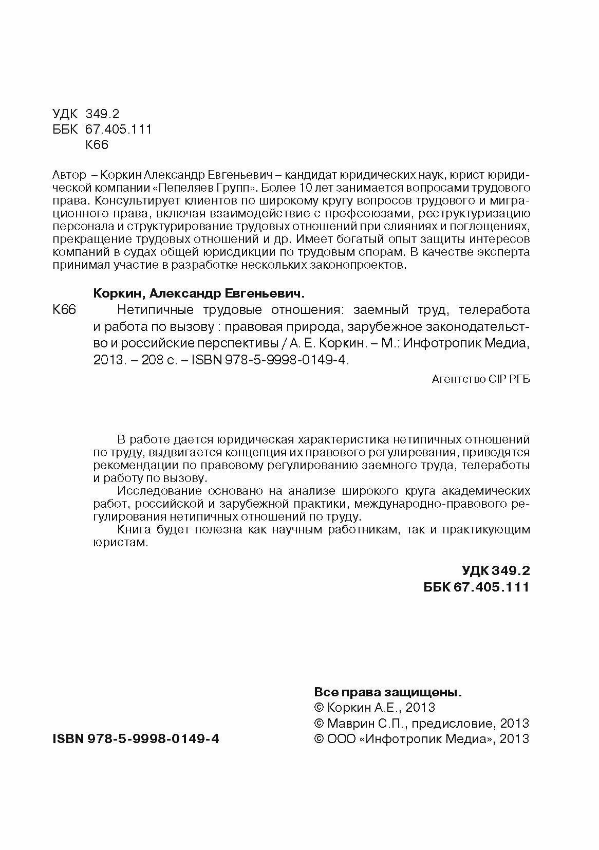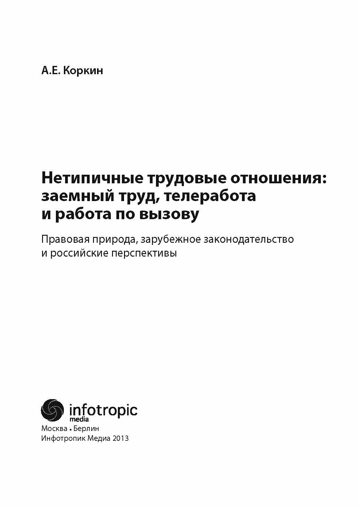Нетипичные трудовые отношения: заемный труд телеработа и работа по вызову. Правовая природа (Коркин Александр Евгеньевич); Инфотропик, 2013