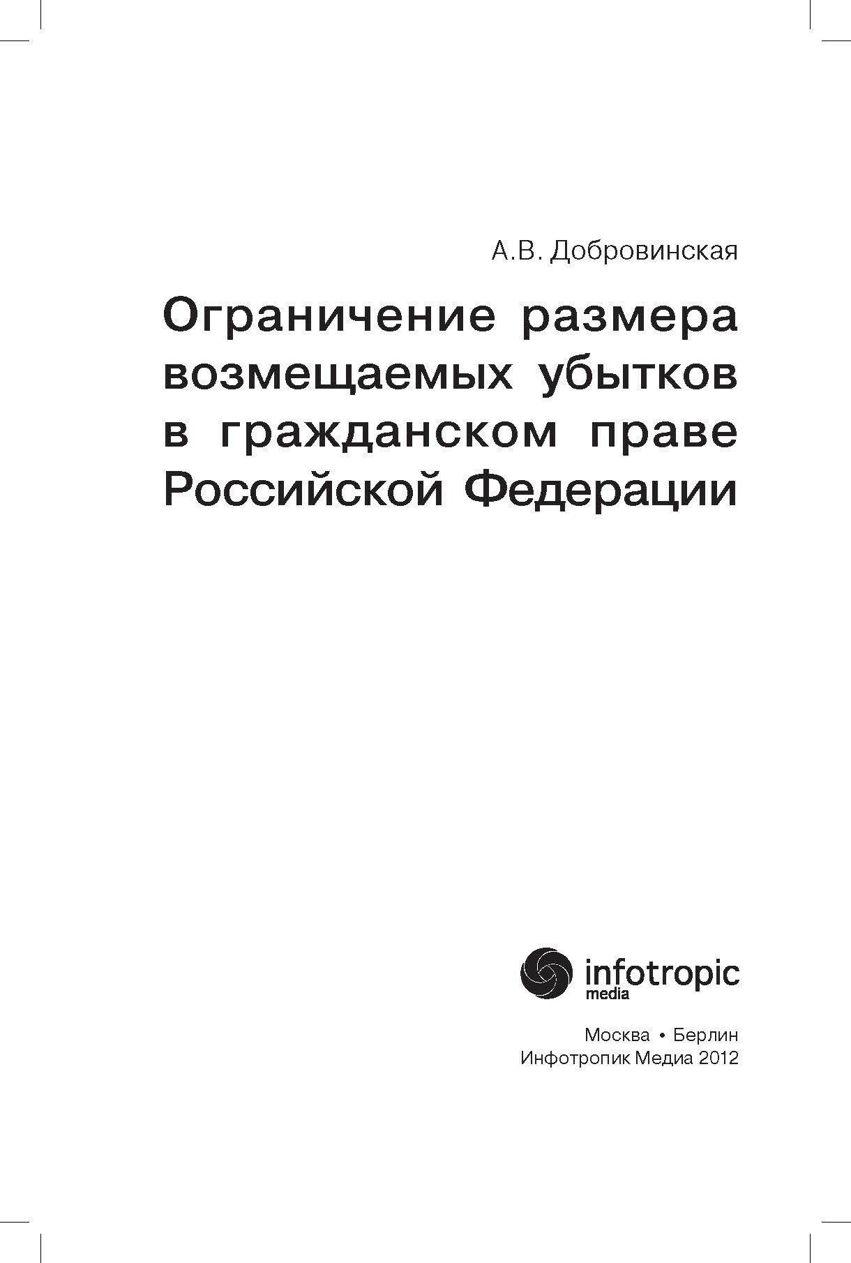 Ограничение размера возмещаемых убытков в гражданском праве РФ (Добровинская Алла Владимировна); Инфотропик Медиа, 2012