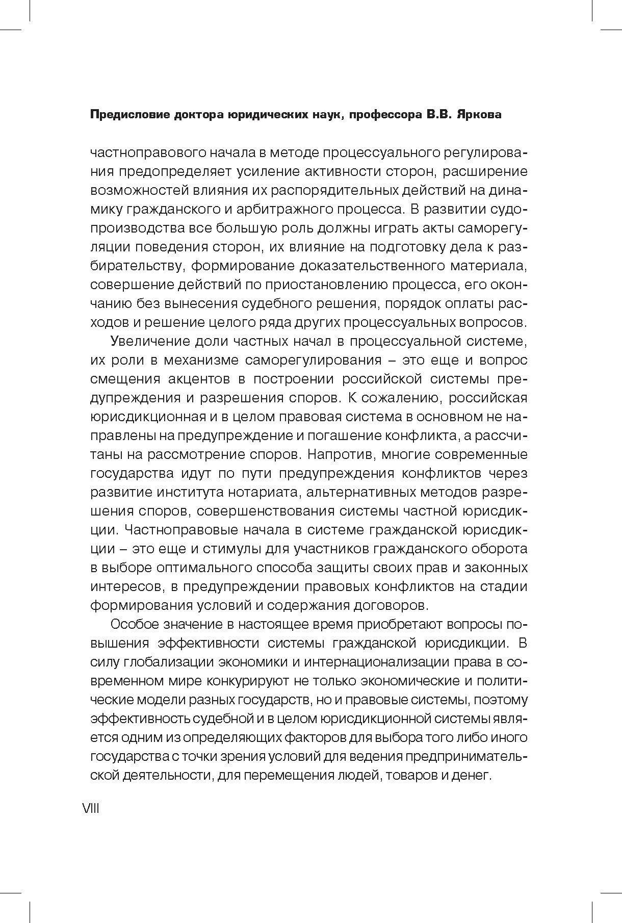С применением системного подхода автором проанализированы проявления основных начал частного и публичного права в гражданском и арбитражном процессе, оценена их роль в модернизации системы гражданского судопроизводства, в организации процесса применения права судом, в установлении пределов вмешательства государства в частную сферу. Особый интерес для специалистов могут представлять основанные на применении экономического анализа права выводы автора об эффективности системы гражданского судопроизводства и эффективности норм гражданского процессуального права.