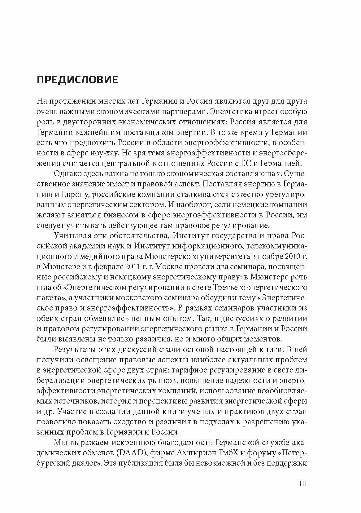 В книге, подготовленной учеными и практиками из Германии и России, получили освещение правовые аспекты наиболее актуальных проблем в энергетической сфере двух стран: тарифное регулирование в свете либерализации энергетических рынков, повышение надежности и энергоэффективности энергетических компаний, использование возобновляемых источников, история и перспективы развития энергетической сферы и др.