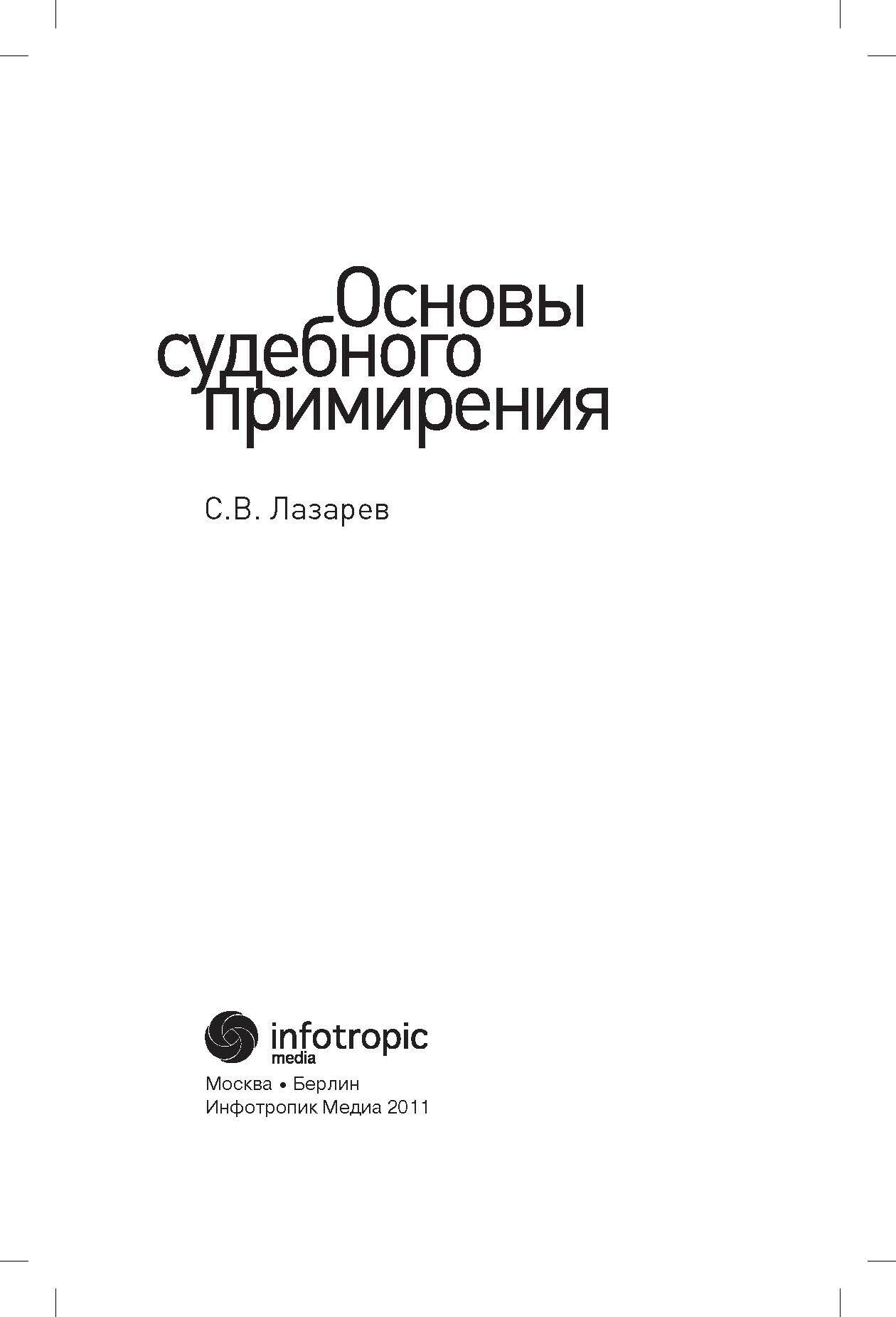Основы судебного примирения (Лазарев Сергей Викторович); Инфотропик Медиа, 2011