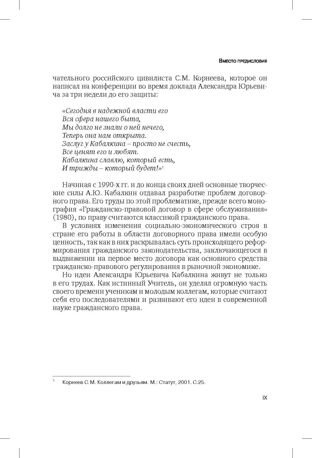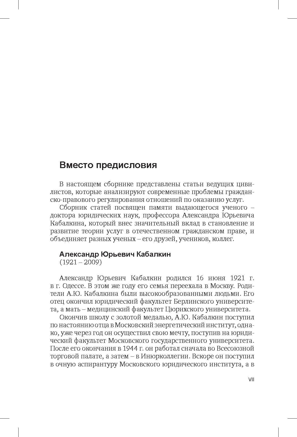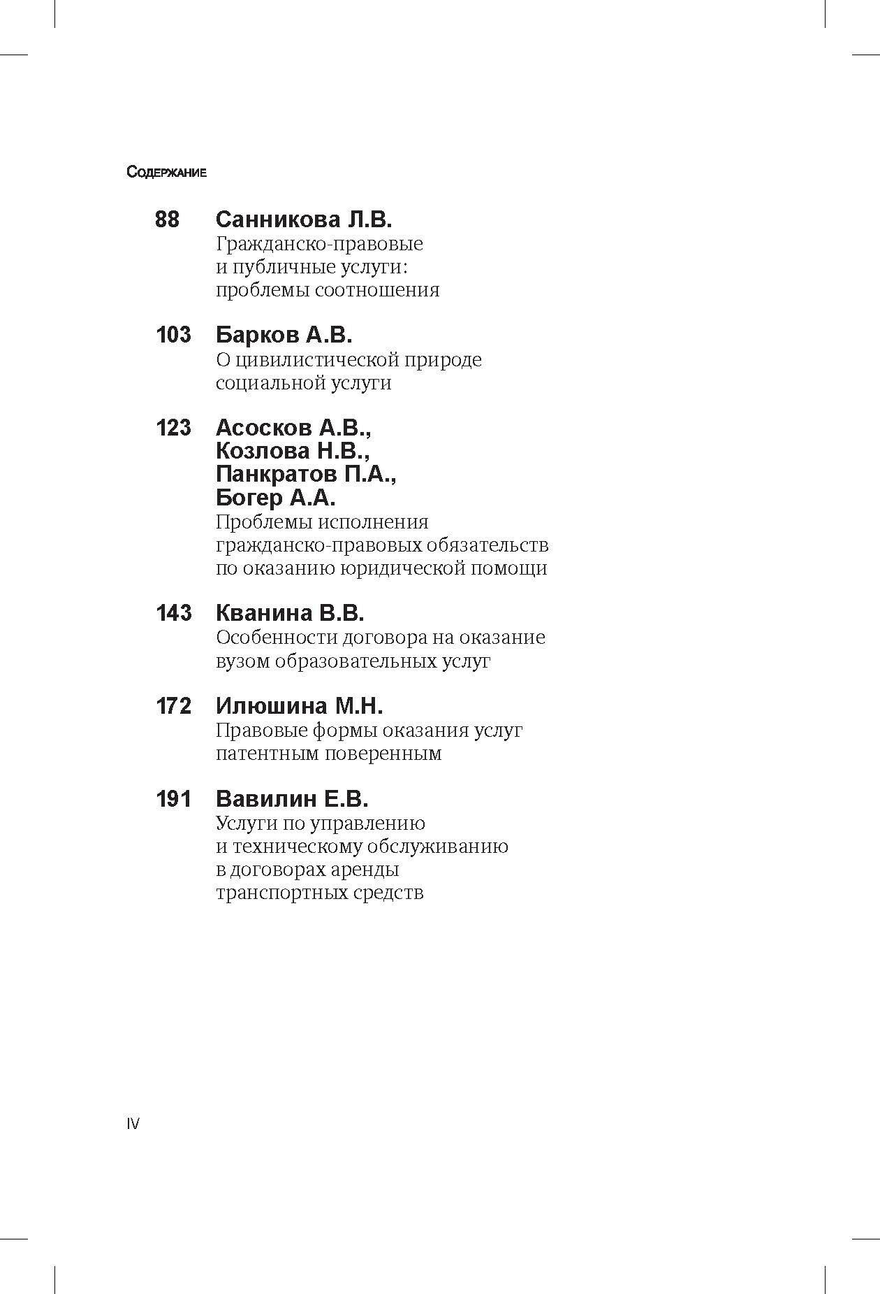 В сборнике представлены статьи ведущих цивилистов, которые анализируют современные проблемы гражданско-правового регулирования отношений по оказанию услуг, в том числе проблемы соотношения гражданско-правовых и публичных услуг, проблемы исполнения гражданско-правовых обязательств по оказанию юридической помощи, вопросы о формировании концепции развития законодательства о защите прав потребителей, о юридических гарантиях охраны прав потребителей в договорных отношениях, об особенностях договора на оказание вузом образовательных услуг, о правовых формах оказания услуг патентным поверенным, об услугах по управлению и техническому обслуживанию в договорах аренды транспортных средств и др.