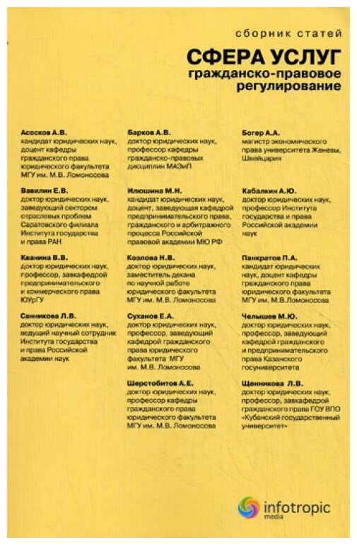 Сфера услуг. Гражданско-правовое регулирование: сборник статей (Барков Алексей Владимирович, Санникова Лариса Владимировна, Асосков Антон Владимирович, Суханов Евгений Алексеевич); Инфотропик, 2011