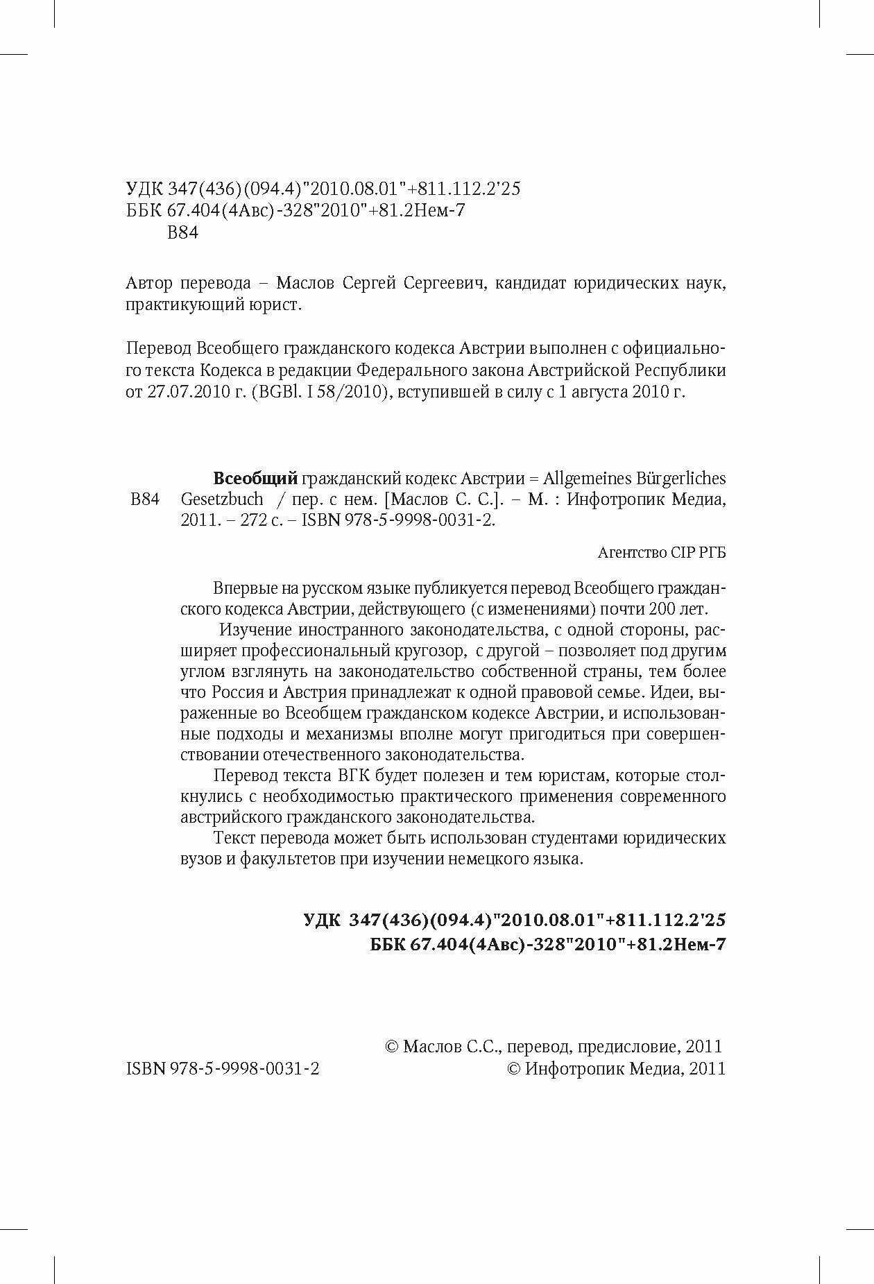 Всеобщий гражданский кодекс Австрии (без автора); Инфотропик, 2011