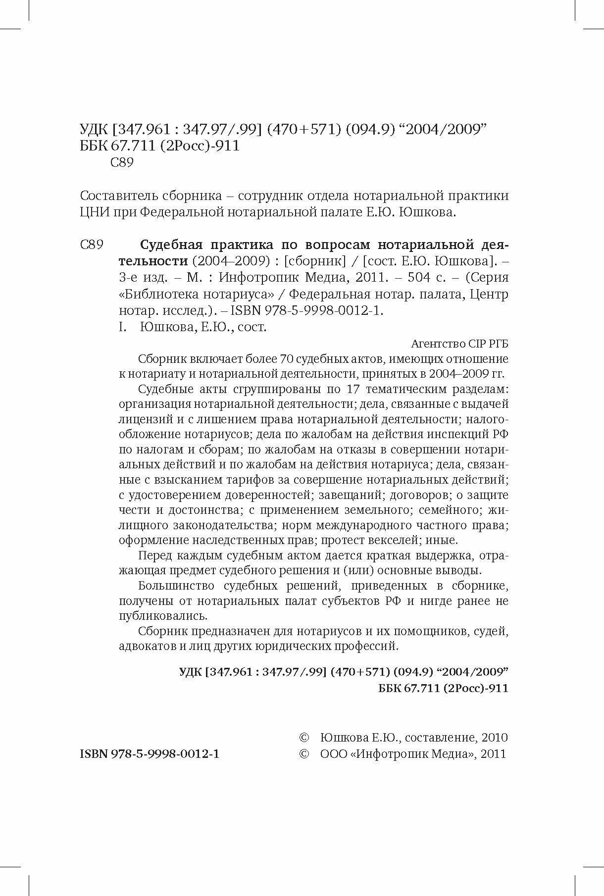 Сборник включает более 70 судебных актов, имеющих отношение к нотариату и нотариальной деятельности, принятых в 2004-2009 гг.