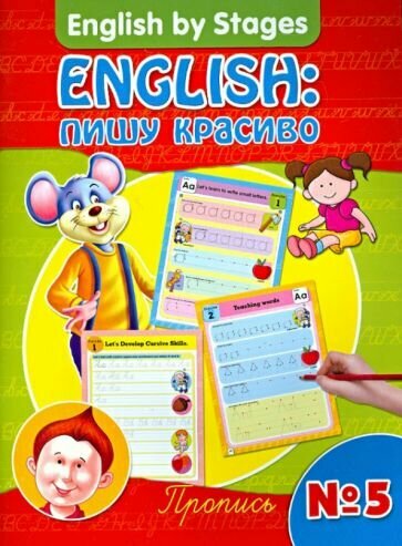 Сеерия прописей «English: пишу красиво» познакомит ребенка с первыми навыками правописания, поможет развить графические навыки, приучить малыша к старанию и усидчивости. Учитывая, что дети любят яркие цвета, мы оформили эти прописи красочно, чтобы привлечь детское внимание. Исследования показали, что яркие цвета имеют свойства не только удерживать внимание малыша, помогают ему лучше усвоить новый материал, но и облегчают процесс обучения. .Обучаясь по этой прописи, ребенок будет вовлечен в увлекательный процесс выписывания слов и предложений. Выполняя задания, малыш сформирует красивый почерк, разовьет интеллект, расширит кругозор, выучит первые слова на английском языке. Он узнает, названия фруктов, овощей, насекомых и рептилий, птиц, животных, сорта цветов, виды транспорта, а также выучит детские стихотворения. . . .