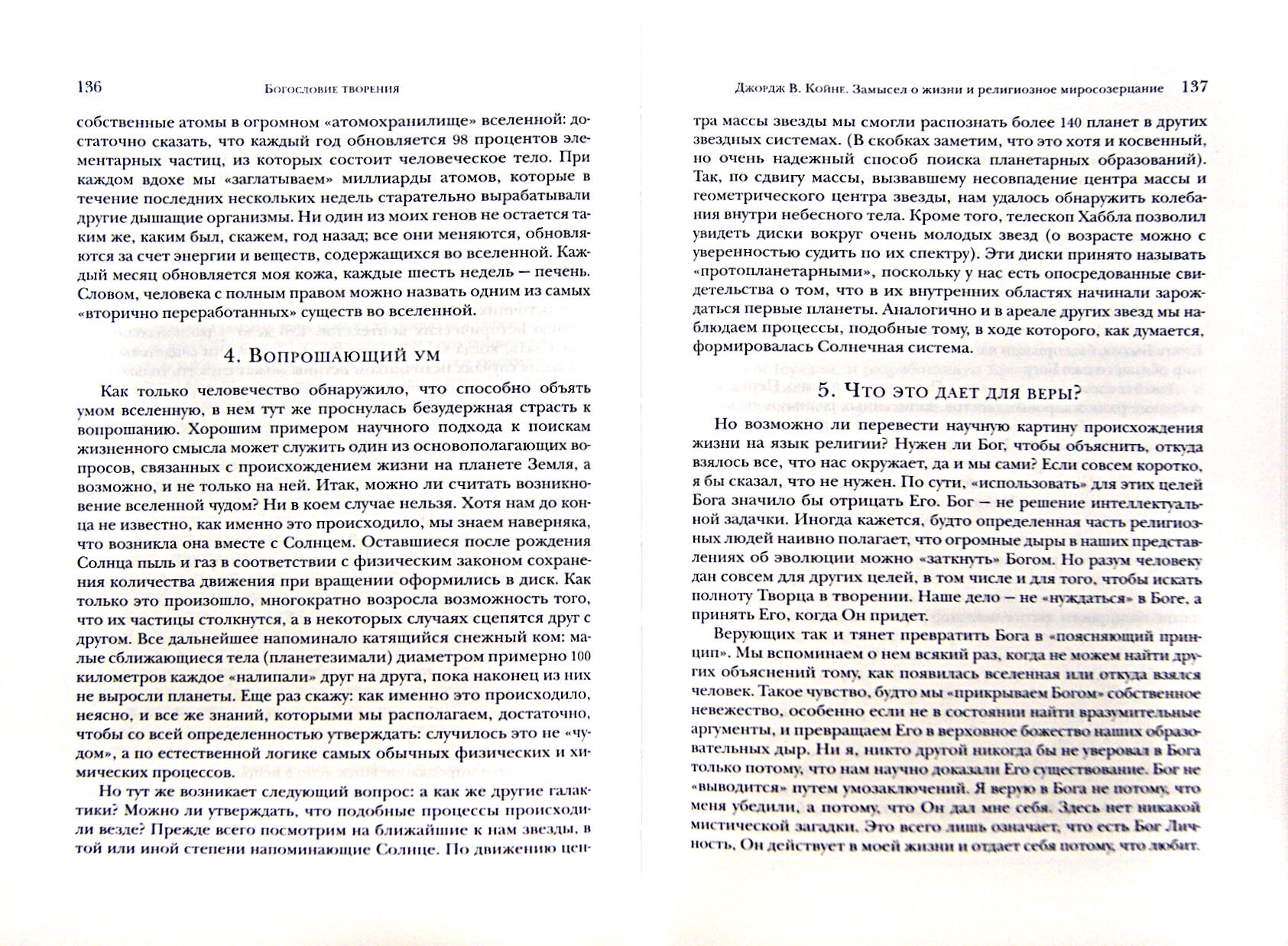 Книга "Богословие творения" - по сути сборник статей отечественных и зарубежных авторов. Статей всего шестнадцать, девять из них - доклады на международной конференции, прошедшей в октябре 2010 года в Звенигороде. Тексты статей трудны для восприятия, примечания мелким шрифтом порой занимают больше половины страницы, авторы докладов имеют более чем впечатляющие статусы (например, Алексей Нестерук - профессор космологии и квантовой физики Института космоса и гравитации Портсмутского университета (Великобритания), научный сотрудник Института православных христианских исследований (Кембридж, Великобритания)). Содержание же статей невероятно интересное. Поэтому чтение данной книги - отличный способ устроить индивидуальный мозговой штурм и получить удовольствие от процесса интеллектуального освоения мироздания на стыке науки и богословия.