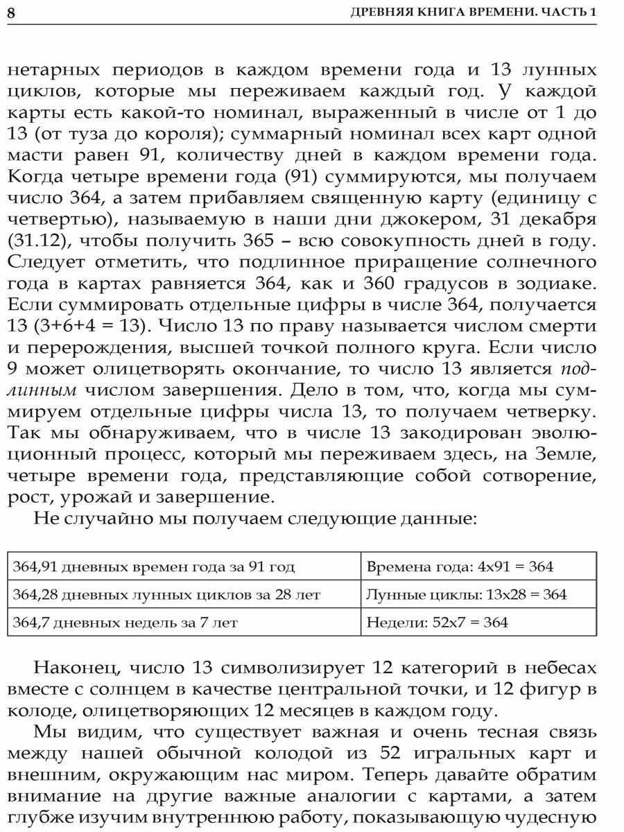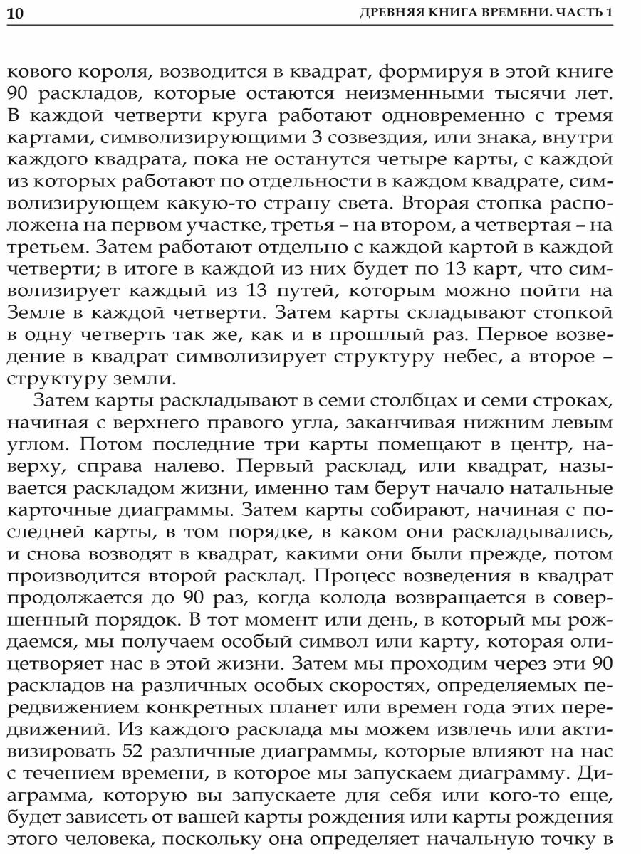 На страницах этой книги описаны первоначальные ступени изучения древней и удивительной символической астрологической системы, основанной на символике и математике колоды из 52 игральных карт. Любой человек, всерьез принимающий знания майя и ацтеков, отраженные ими в обоих их календарях и сооружениях, найдут много общего между ними и Древней книгой времени - методом, изложенным в этой работе. В этой книге впервые в современной истории показаны начальные стадии изучения и постижения подлинного, точного метода символической астрологии, как ее понимали древние. Вам предстоит изучить одну из древнейших и самых простых форм астрологии. Ее можно использовать как эффективное средство предсказания, полезный и четкий путеводитель для понимания своей жизни, планирования событий или стратегий, а также как средство для глубокого духовного озарения и просветления.