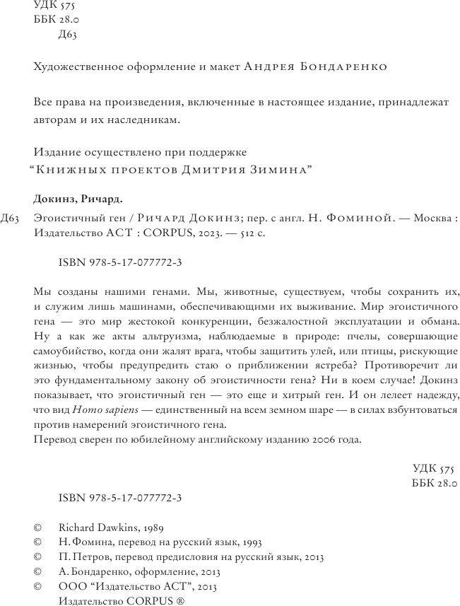 Книга: Эгоистичный ген (Ричард Докинз); Corpus (АСТ), 1989