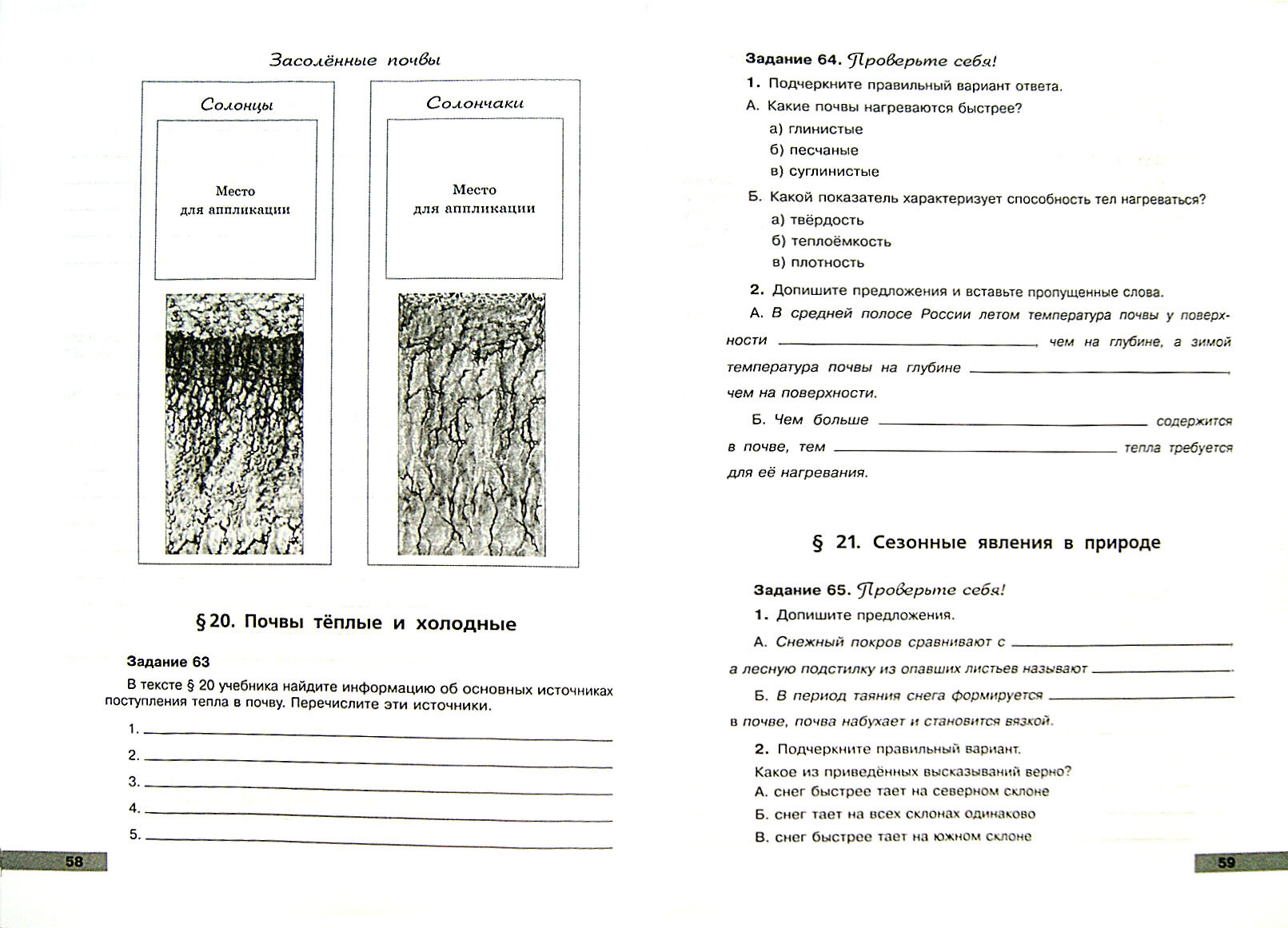 Очень радует такие рабочие тетради для школьников: современные, с различными заданиями прикладного характера, задания, побуждающие интерес к предмету у учеников. Вся тетрадь черно-белая, но есть цветной вкладыш. Всего рассматривается 5 тем: Человек познаёт природу, Тела и вещества в биосфере Земли, Природная среда. Почва - среда жизни организмов, Почва - основа сельского хозяйства, Сохранение почв в биосфере.