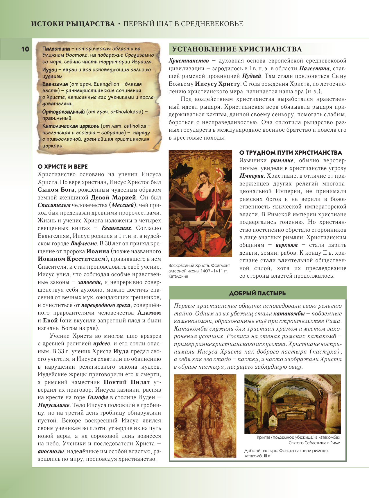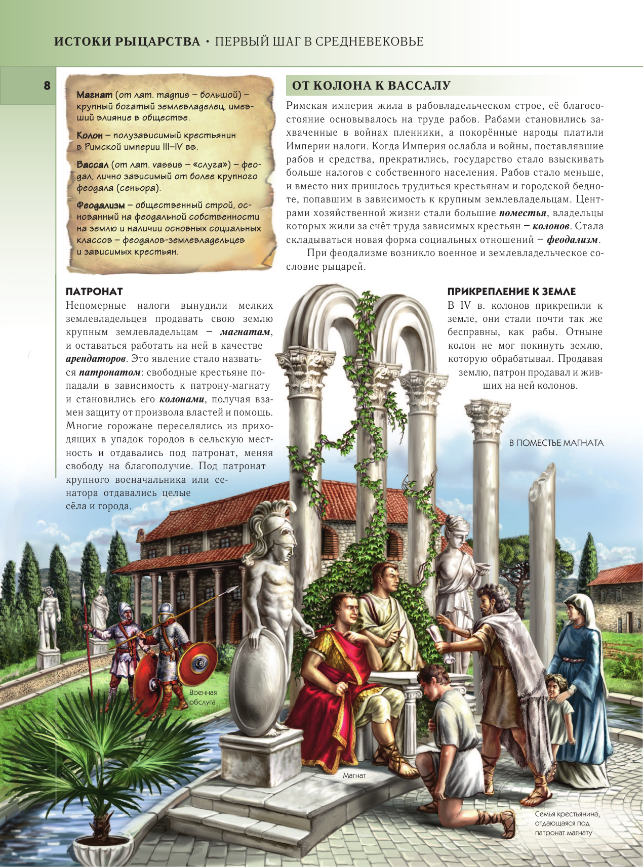 Очень интересная книга, покупали как ни удивительно не сыну, а мужу, которому на днях стукнет 30 лет. Он с детства увлечен историей и тема рыцарей его всегда привлекала, а тут был просто покорен, во-первых, содержанием, а во-вторых, иллюстрациями : впервые за последние годы в руках оказалась книга без кустарно выполненных компьютерных картинок, где средневековые замки стоят на подфотошопленной траве + и тут и там наляпаны невразумительные человечки. В этой книге картинки выполнены художником, поэтому дух эпохи отлично чувствуется и нет ощущения, что кто-то сделал на тебе деньги.