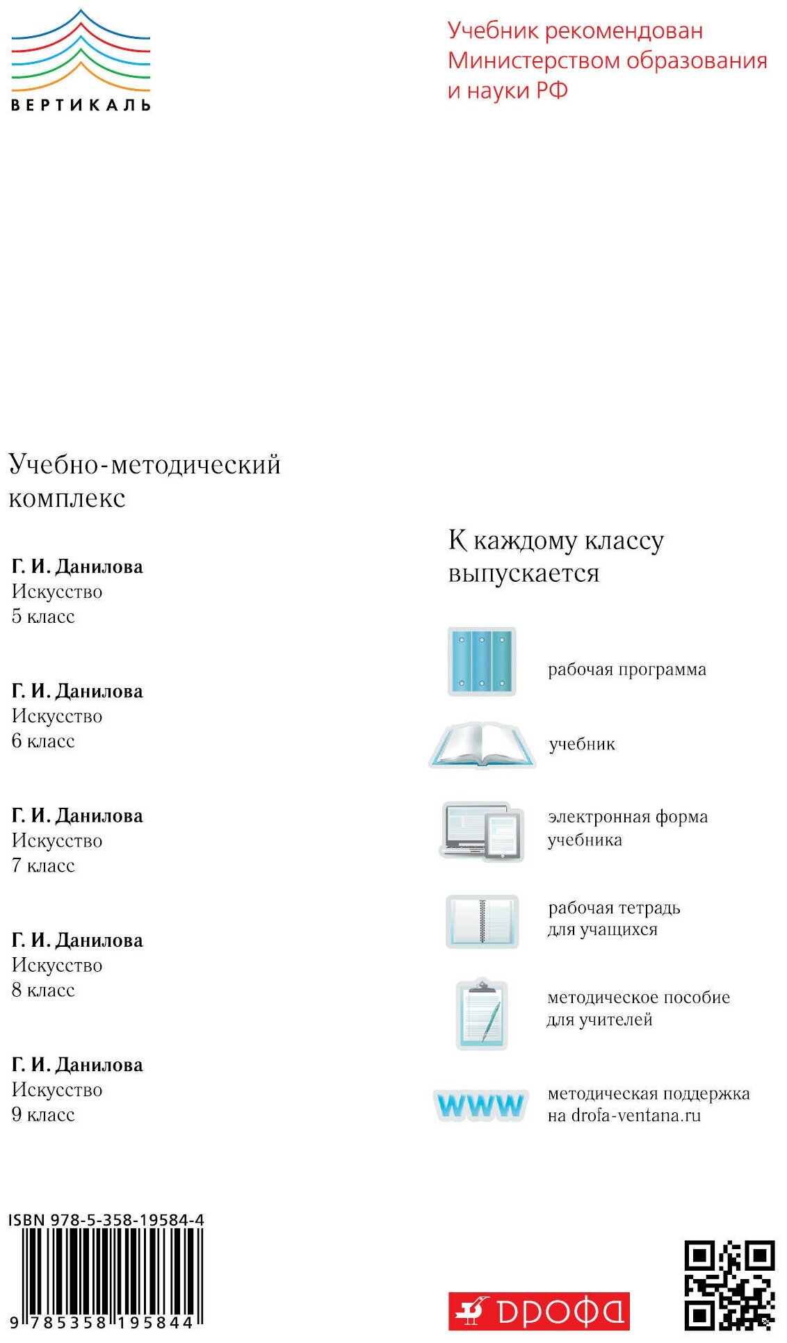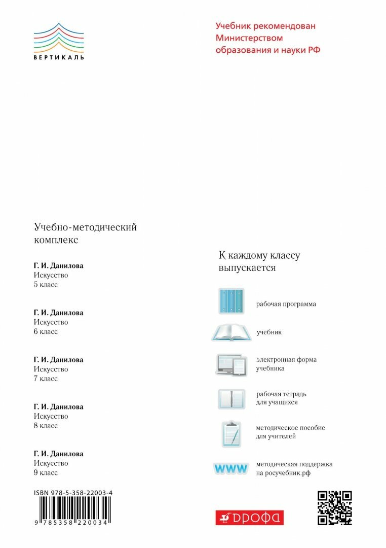 Учебник приобрели для школьных уроков Мировой художественной культуры. Содержание учебника соответствует школьной программе для 6 класса. В конце учебника список ресурсов и источников литературы для дальнейшего самостоятельного изучения. Учебники Даниловой Г.И. указаны в списках литературы для подготовки к поступлению в ВУЗы по направлениям творческих специальностей. Хорошее качество печати.
