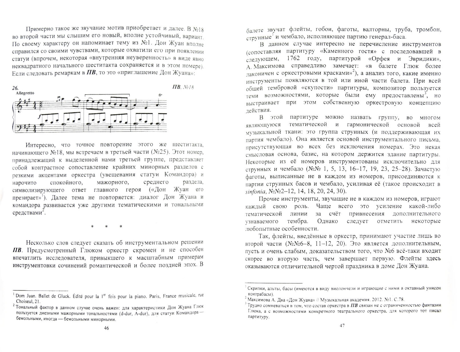 Данная книга не ставит своей целью обобщить знания о всех балетах Глюка, в ней нет и общего анализа балетной реформы Глюка3. Она родилась единственно из исследовательского любопытства автора, который, обнаружив не один, а несколько вариантов музыки, определяемой как "балет Глюка "Каменный гость"", решил рассмотреть их поближе. Именно описание, анализ и уточнение имеющихся в этих вариантах расхождений и составляют главное содержание следующих страниц.