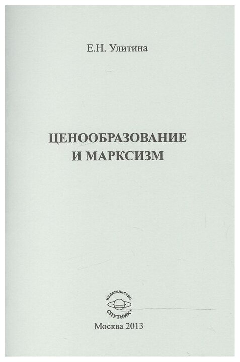 Ценообразование и марксизм (Улитина Елена Николаевна); Спутник+, 2013