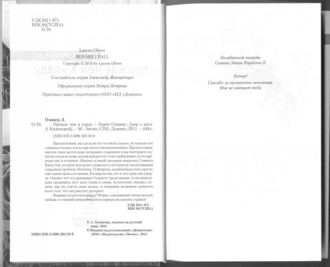 Книга: Прежде чем я упаду (Лорен Оливер); Эксмо, Редакция 1, 2019