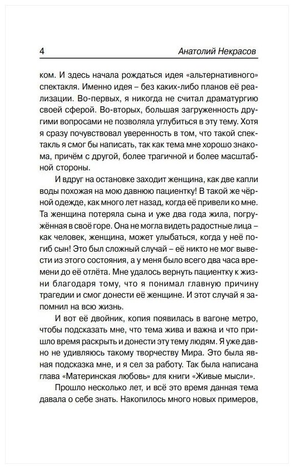 Анатолий некрасов в этой книге расказывает о влиянии отношений родителей на их детей,как на представителей единой системы.Системы семьи. Дает понимание роли женщины в отношениях мужского и женского начала.Рекомендую эту книгу своим пациентам.Подавляющее большинство довольно прочитанным и пробует применять все это в жизни.Были и отзывы от непринявших стиль изложения Анатолия.Дескать сильно возводит мужчину в ранг божественного и подчиняет женщину.Но это дело каждого принимать это или нет. Написано доходчиво,читается легко.Рекомендую.