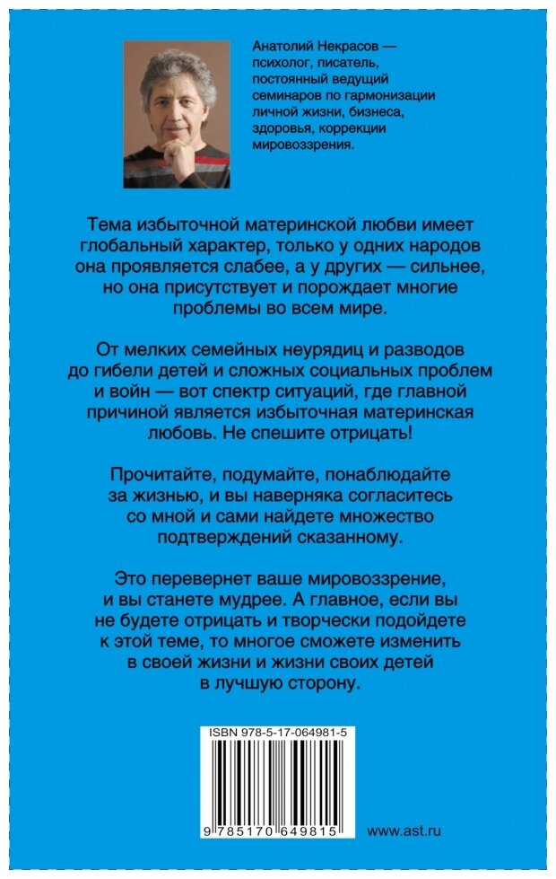 Эта книга исследует необычную тему - материнскую любовь. Подумайте: что здесь необычного? Рассматривается та сторона материнской любви, которая исподволь приносит множество страданий и горя родителям, детям и обществу в целом. Исследований такой глубины на эту тему в литературе ещё не было, и каждый читатель найдёт множество полезной информации для применения в своей жизни.