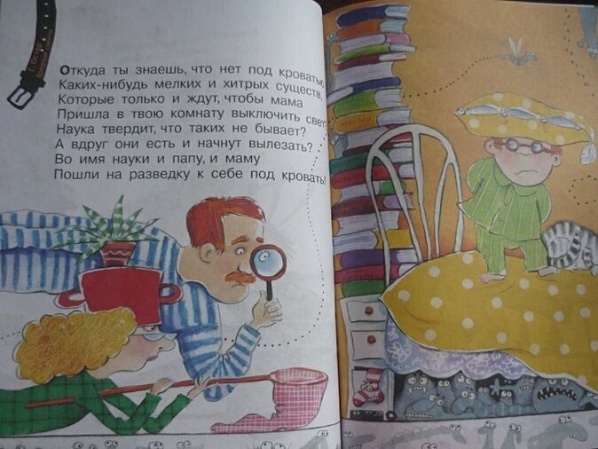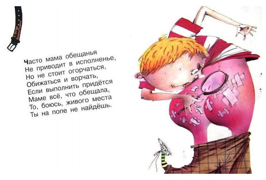 Я бы эту книгу никогда бы не дала читать ребёнку и точно не ранее 10 лет. Ведь дети буквалисты и могут воспринять совет как инструкцию к действию. А детям со слабой нервной системой, отличающимся нервозностью и неустойчивостью психики такая литература может нанести непоправимый вред. Для любимого родителями ребёнка такая книжка, конечно, подарок. Но в рисунках, по-моему художники переборщили с ремнём. -