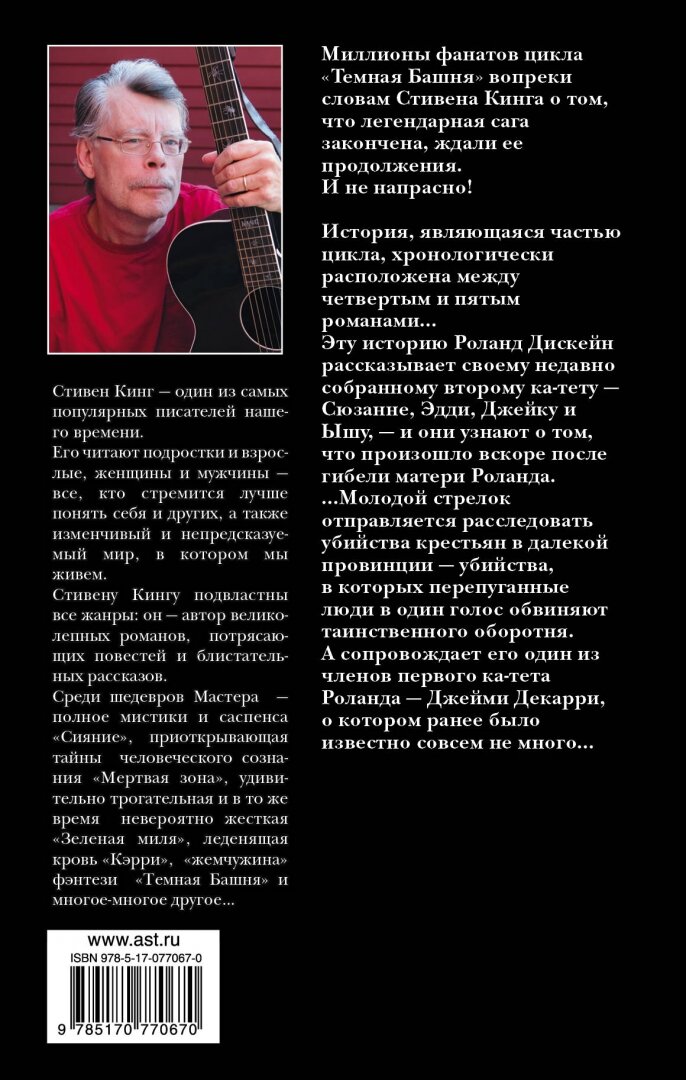 Миллионы фанатов цикла "Темная башня" вопреки словам Стивена Кинга о том, что легендарная сага закончена, ждали ее продолжения. И не напрасно!