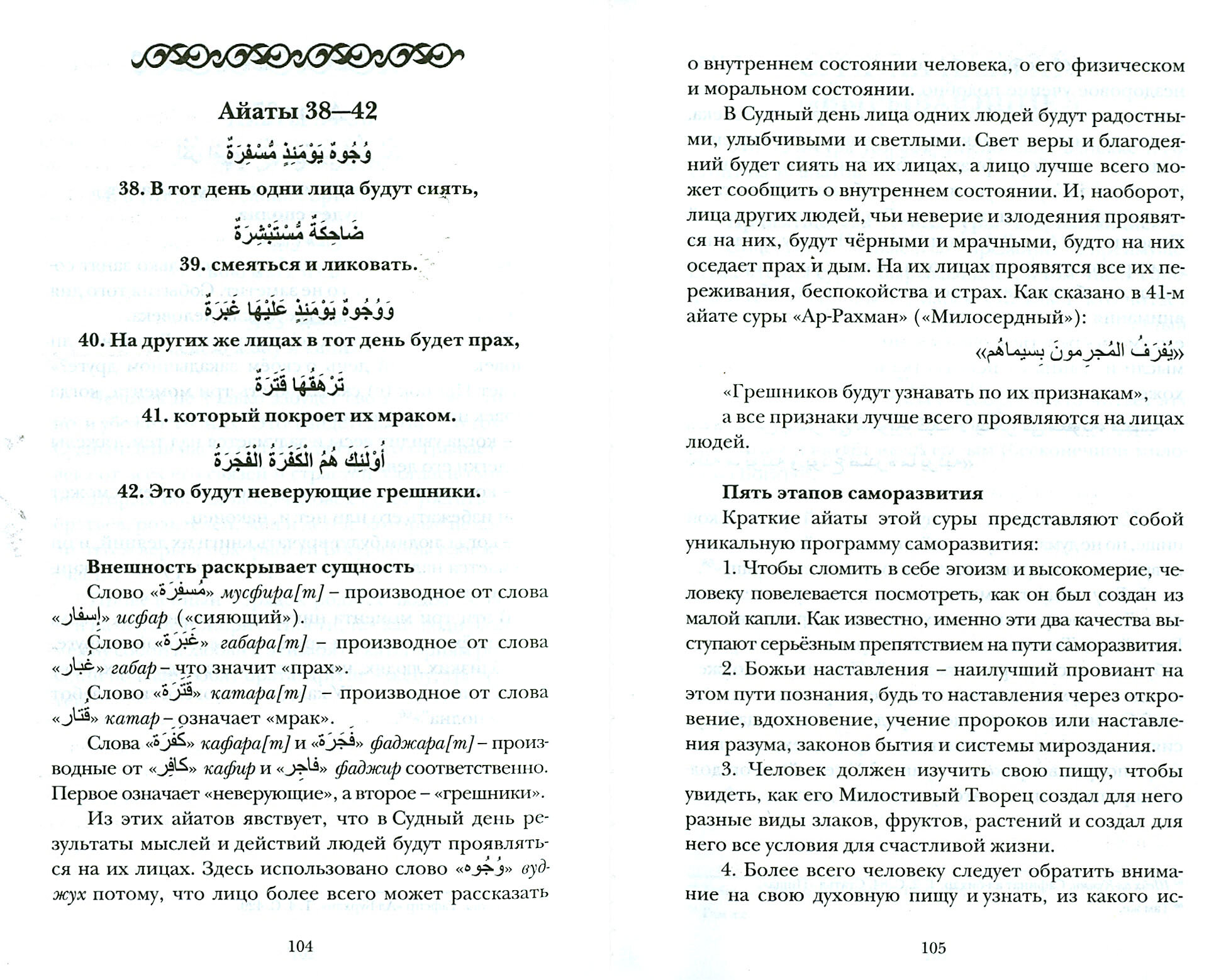Книга представляет собой авторский комментарий к шести сурам Корана: "Весть", "Нахмурился", "Вырывающие", "Скручивание", "Раскалывание", "Обвешивающие".