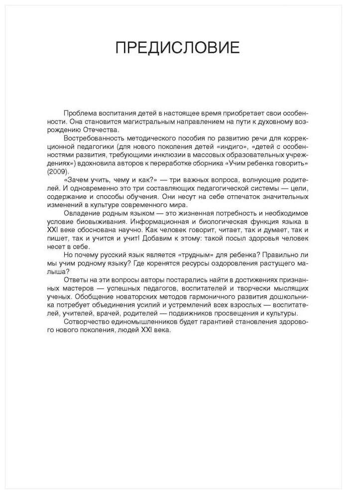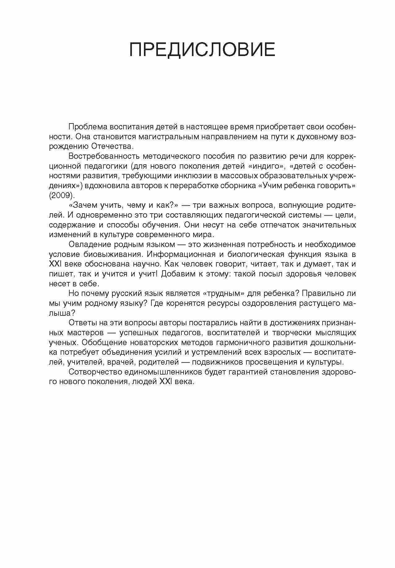Книга представляет методическое руководство по развитию речи детей, в ней излагается целостная система развивающего образования, основанная на авторской концепции гармонического развития детей возрастной группы от 2 до 8 лет. Концепция была разработана в "Университете развития" в 1996-2013 гг. Методические и учебно-тематические материалы разработаны по принципам здоровьесберегающих технологий. Организация общих занятий с детьми рассматривается в первой и второй частях книги, а в третьей и четвертой - организация занятий с детьми в специальных "речевых" группах. В первой части излагаются сведения о закономерностях и об отклонениях от нормального развития детской речи, даны рекомендации по организации речевого пространства взаимодействия педагогов с детьми, а также ценные диагностические методики для определения уровня развития речевых навыков детей. Основные методики по активизации опережающего речевого развития сосредоточены во второй части книги. Здесь описываются развивающие игры для развития зрительного и слухового внимания, голоса, пространственной ориентации, двигательной активности; методика подготовки руки к письму; работа с конструктором букв. Продуктивные способы логопедической поддержки в работе с детьми "речевых" групп излагаются в третьей части Интенсивные формы коррекции речевого развития с привлечением родителей представлены в четвертой части книги. Книга будет полезна воспитателям, учителям, психологам, логопедам и дефектологам, социальным работникам, а также студентам педагогических колледжей и вузов. Особое значение публикуемые материалы имеют для родителей, поскольку разнообразные комплексные, учебно-игровые приемы развития речи успешно применяются в индивидуальных занятиях с детьми.
