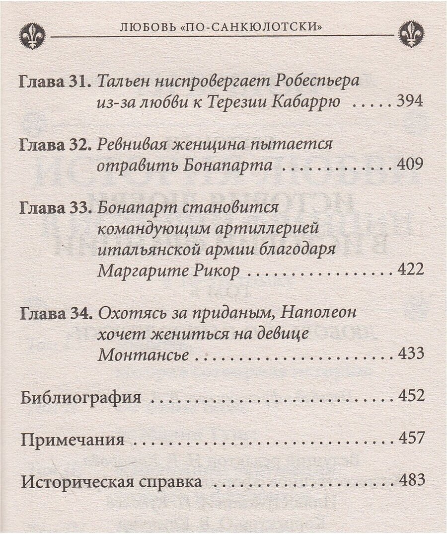 Данная книга посвящена периоду Великой французской революции, где Ги Бретон рассказывает практически все известные любовные связи ведущих героев революции от Людовика XVI до Максимилиана Робеспьера и Наполеона Бонапарта на основе множества документов и протоколов, писем и воспоминаний, газетных статей, памфлетом и сплетен.