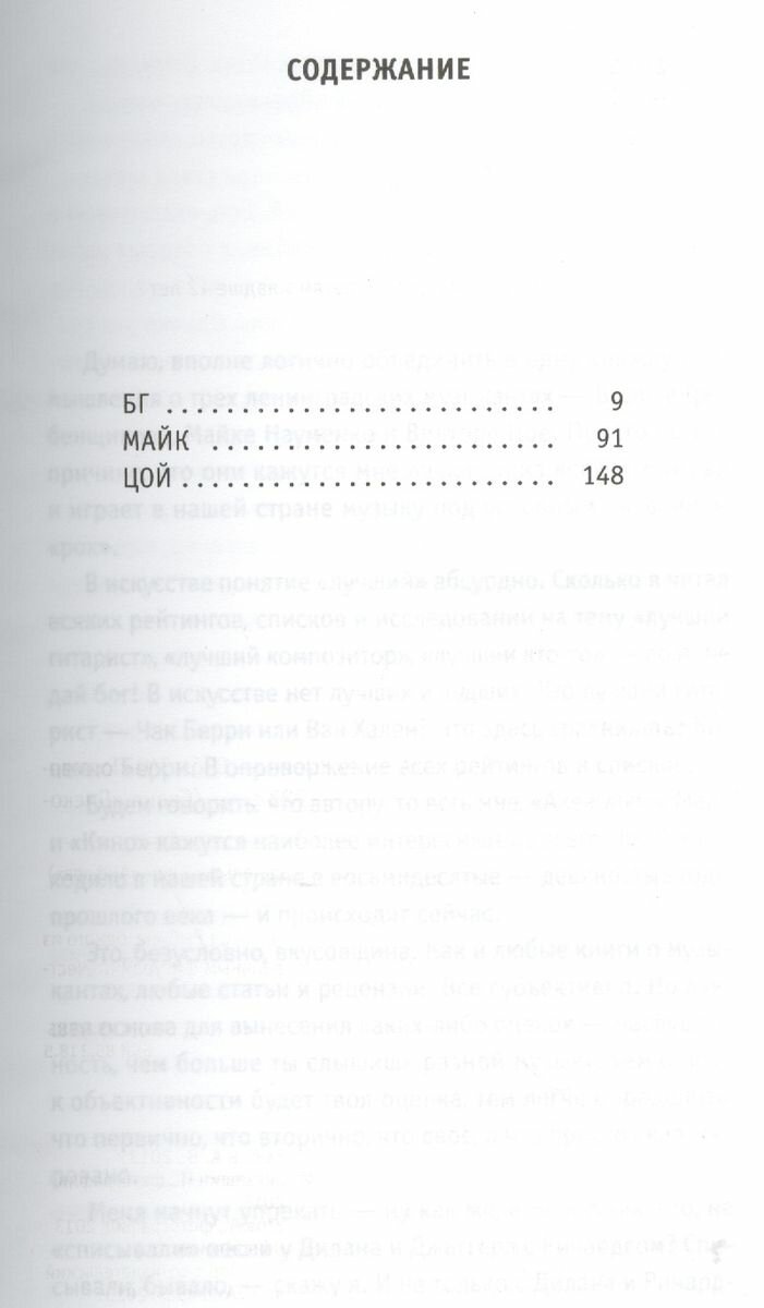 Думаю, вполне логично объединить в одну книжку размышления о трех ленинградских музыкантах - Борисе Гребенщикове, Майке Науменко и Викторе Цое. Просто по той причине, что они кажутся мне лучшими из всех, кто играл и играет в нашей стране музыку под условным называнием "рок".