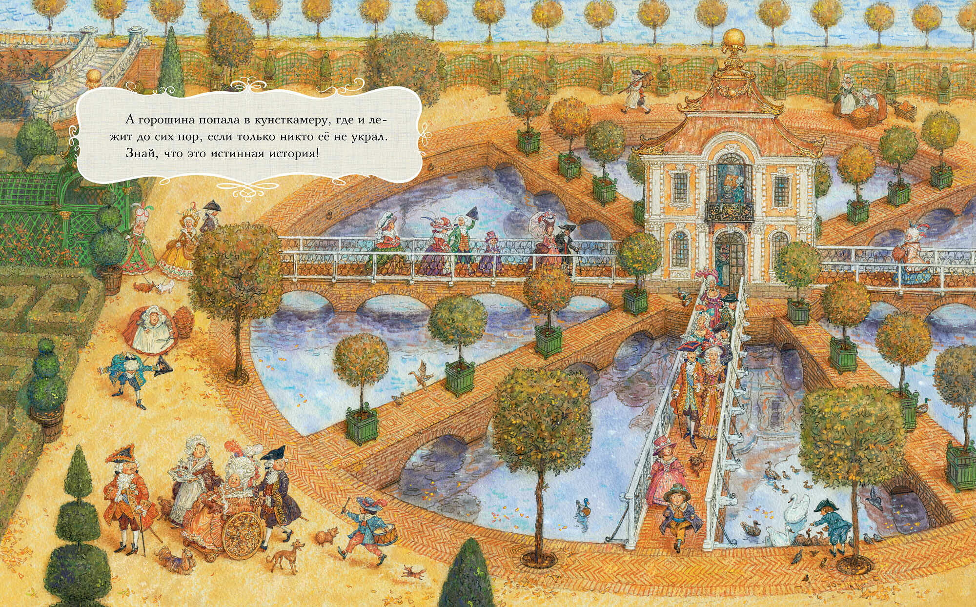 Книги рождаются по-разному: появлению одной предшествует множество эскизов и переделок, другая так и бежит из-под кисти. А идея этой книжки, по свидетельству художника Антона Ломаева, осенила его во время прогулки по пригородному парку в один из последних осенних солнечных дней. И это неудивительно: ведь когда-то по его дорожкам ходили настоящие императоры и императрицы, принцы и принцессы, фрейлины и придворные…