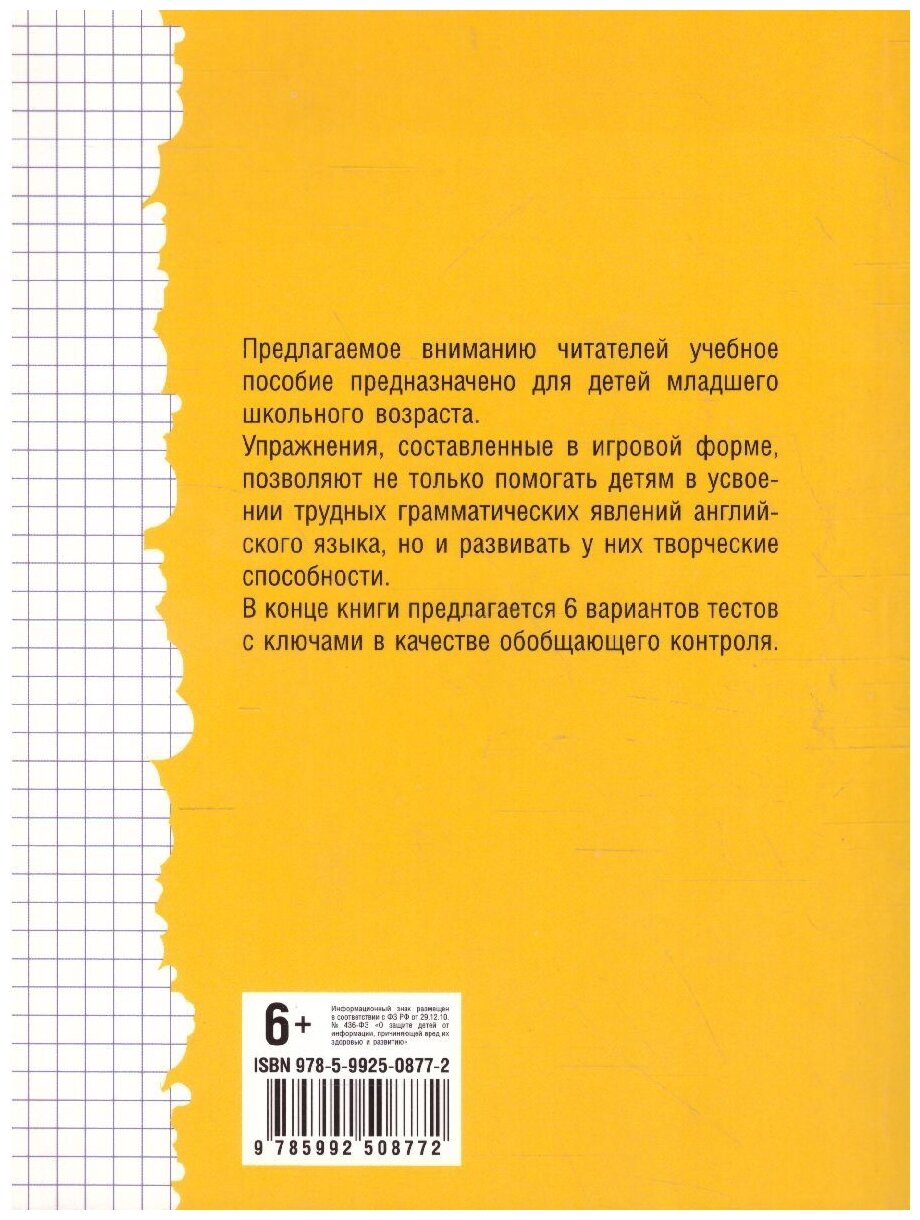 Одна из лучших книг по английской грамматике для 2-3 классов . Много интересных упражнений , которые дети выполняют с огромным удовольствием! Упражнения по базовой грамматике ( to be , предлоги и т.д.) позволяют хорошо закрепить грамматическое правило . Рекомендую преподавателям и репетиторам английского языка !