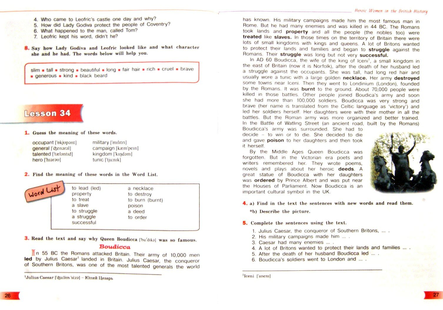 Книга для чтения знакомит учащихся с отрывками из произведений популярных детских писателей англоязычных стран, содержит материалы об известных путешественниках и исследователях, легенды о героических женщинах в истории Британии, краткие эссе об Америке, другие познавательные материалы.