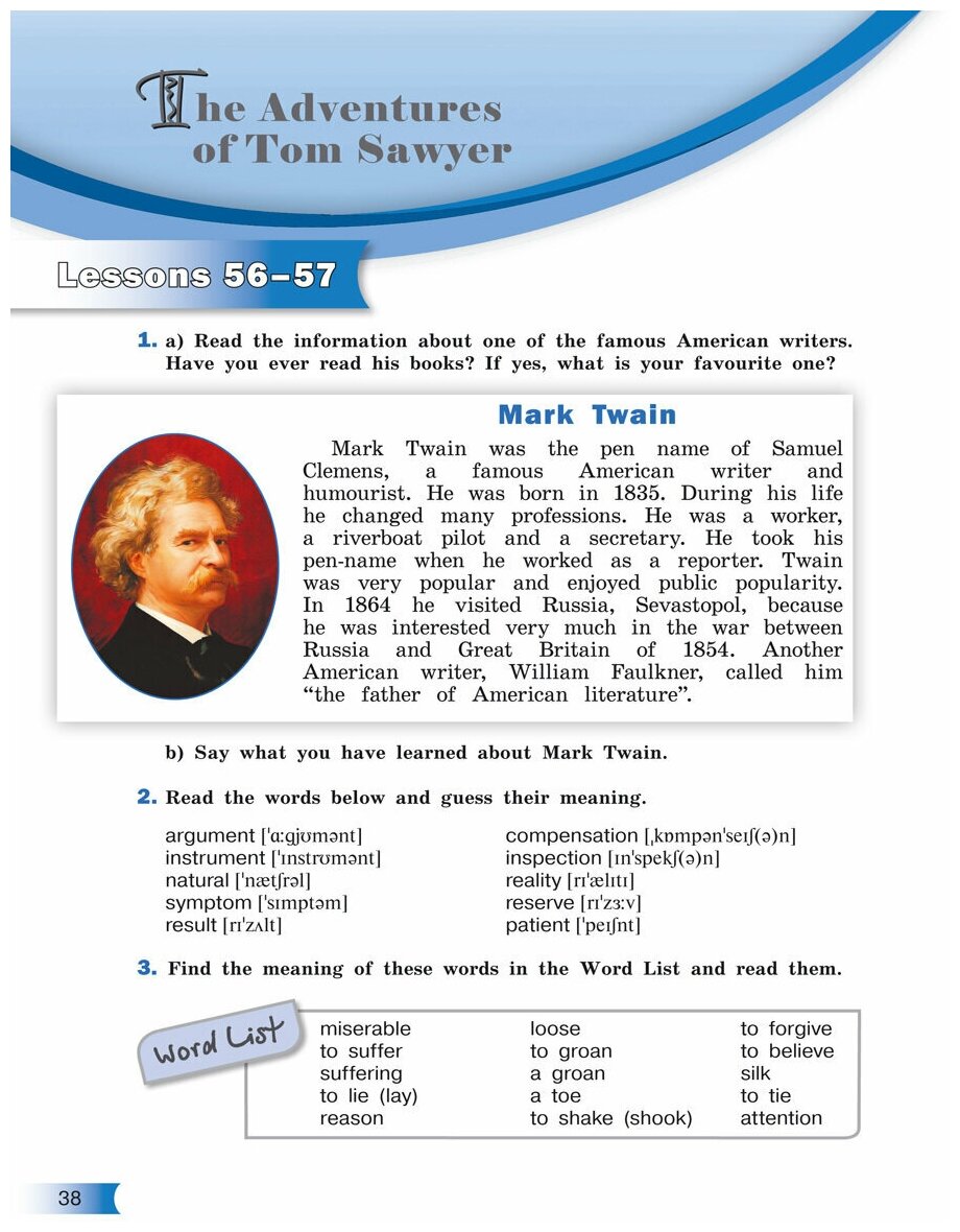 Книга для чтения состоит из 10-ти рассказов, каждый примерно по 2 страницы: The Cat That Walked by Himself, Jennings and His Friends, Heroic Women in the British History, Famous Explorers, Naughty Fairies, The Adventures of Tom Sawyer, Do you know that..., The Call of the Wild, The Enchanted Castle, Treasure Island. Также встречается информация об авторе или другом знаменитом человеке перед текстом для лучшего понимания. После каждого текста даны вопросы на понимание и другие задания. Тексты сопровождаются иллюстрациями. В конце книги дан список новых слов в алфавитном порядке. В целом, хорошее и интересное пособие для чтения, которое можно использовать, как в дополнение к учебнику Тер-Минасовой, так и отдельно от него, как самостоятельное пособие для домашнего чтения.