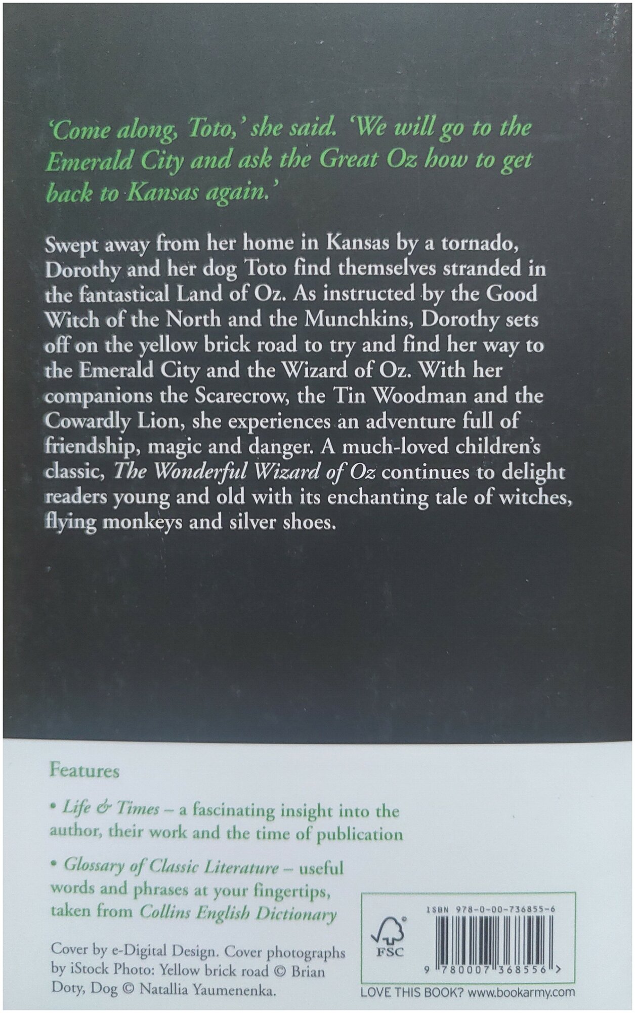 With her companions the Scarecrow, the Tin Woodman and the Cowardly Lion, Dorothy experiences an adventure full of friendship, magic and danger. A much-loved children's classic, The Wizard of Oz continues to delight readers young and old with its enchanting tale of witches, flying monkeys and silver shoes.