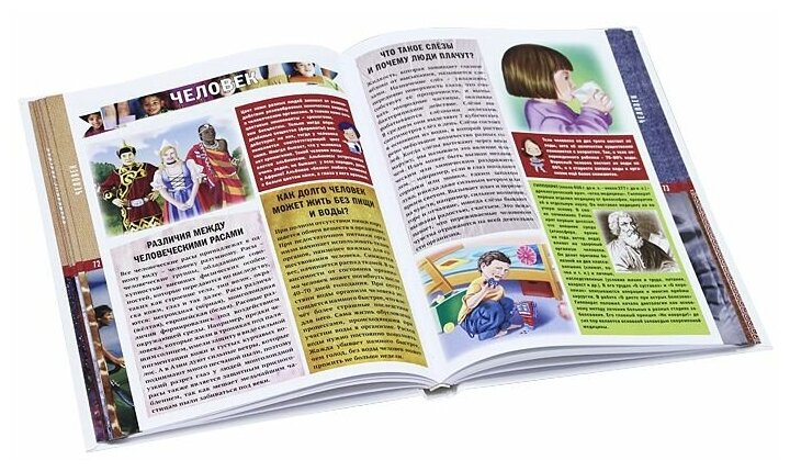 Купила книгу в подарок. Приятно удивлена! Для данной стоимости-книга великолепна. Очень много разделов: вселенная, земля, природные явления, динозавры, животный мир, человек, великие путешественники, семь чудес света, древние цивилизации, история Росии. Каждая страничка иллюстрированна. Бумага плотная. Очень интересная книга для детей дошкольного и младшего школьного возраста. Да и взрослым будет интересно почитать!