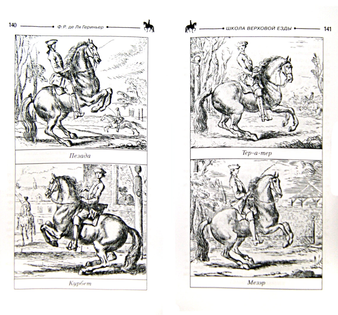 Книга Франсуа Робишона де Ля Гериньера "Школа верховой езды" впервые увидела свет очень давно, в 1734 году. Не раз переизданное с тех пор произведение заслужило среди мастеров Высшей Школы (Haute Ecole) негласное название "конная библия". Впервые за всю историю верховой езды в данной книге были четко сформулированы основы подготовки лошади, опровергнуть которые никто не смог по настоящее время. Ясный и простой язык, отсутствие повторов, излишней детализации, глубочайшее знание истории вопроса отличают "Школу" от множества других подобных книг.
