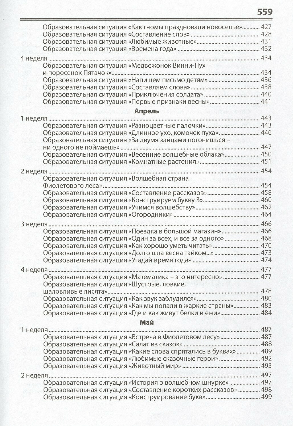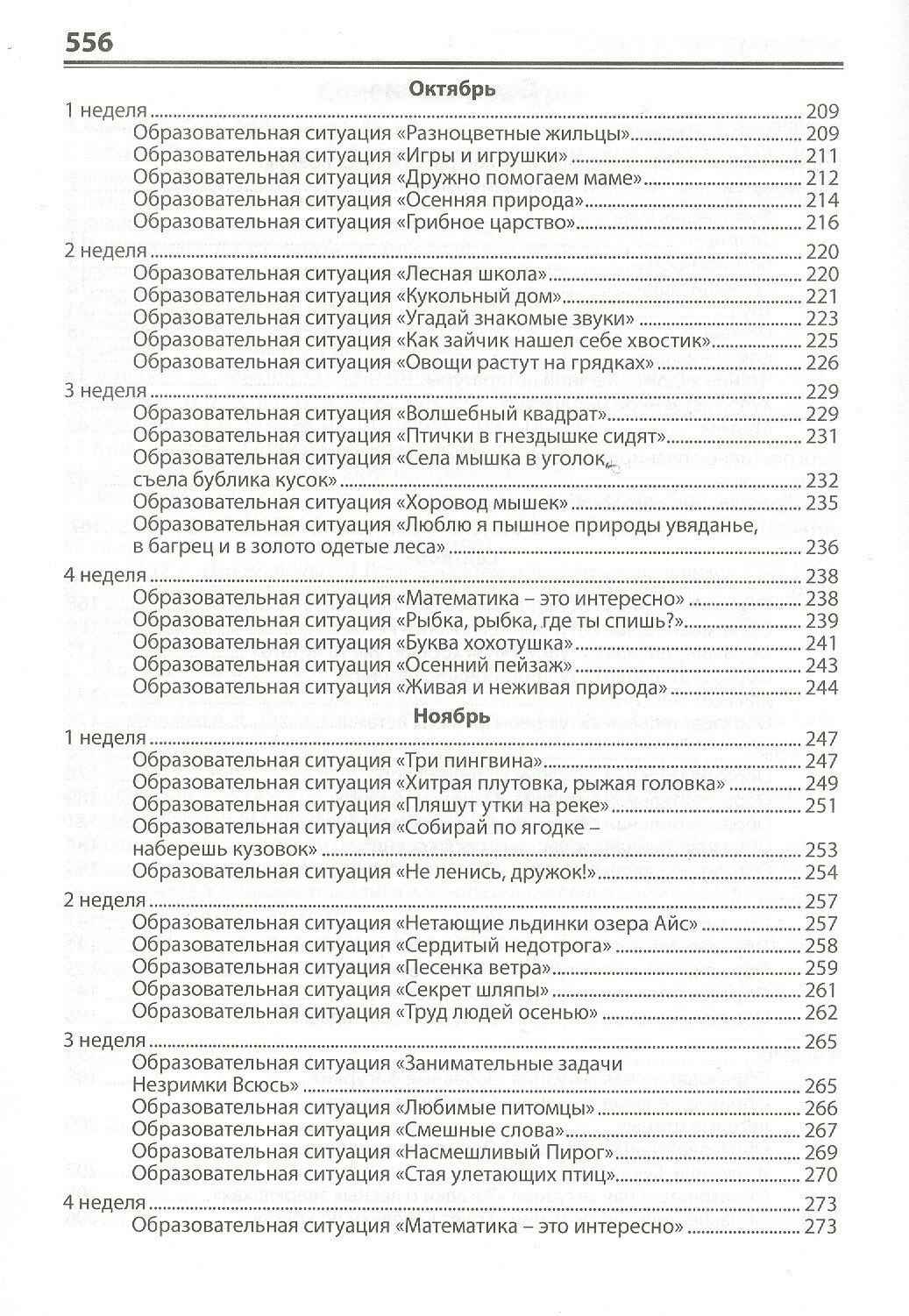 В пособии дано комплексно-тематическое планирование образовательного процесса, в котором представлены темы, задачи образовательных ситуаций, интегрируемые образовательные области, итоги освоения содержания образовательных областей. Для удобства материал разделен на недели, месяцы учебного года.