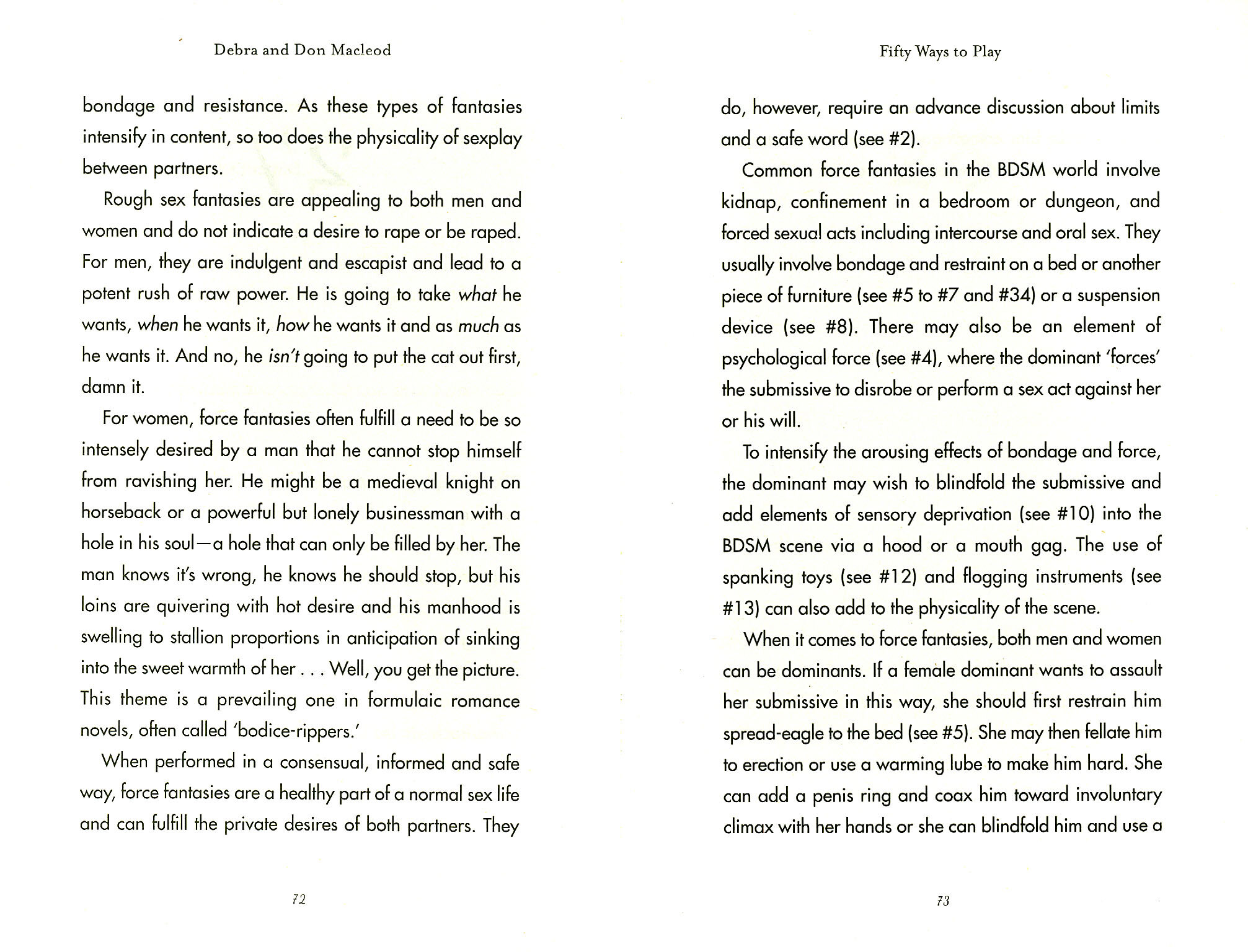 Husband and wife team Debra and Don Macleod, whose previous books have been awarded 'Best in Bed' by Women's Health Magazine, show you how to perform the sexual acts that others have only read about - acts that will form incredible bonds between you and your partner, that will allow you to connect for the first time or reconnect as never before - and will blow your mind every time. In short, Fifty Ways to Play will revolutionise your sex life.
