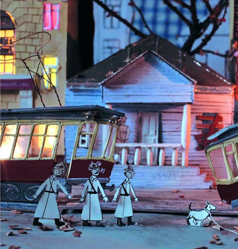 Иллюстрации к книге родились не только из бумаги и красок, но и из картона, клея, трубочек для напитков, старых пуговиц, медной проволоки, крышек пластиковых бутылок. С их помощью появились сначала «герои» стихотворения — трамваи, а потом и вырос целый город — с улицами, домами, рельсами и жителями.