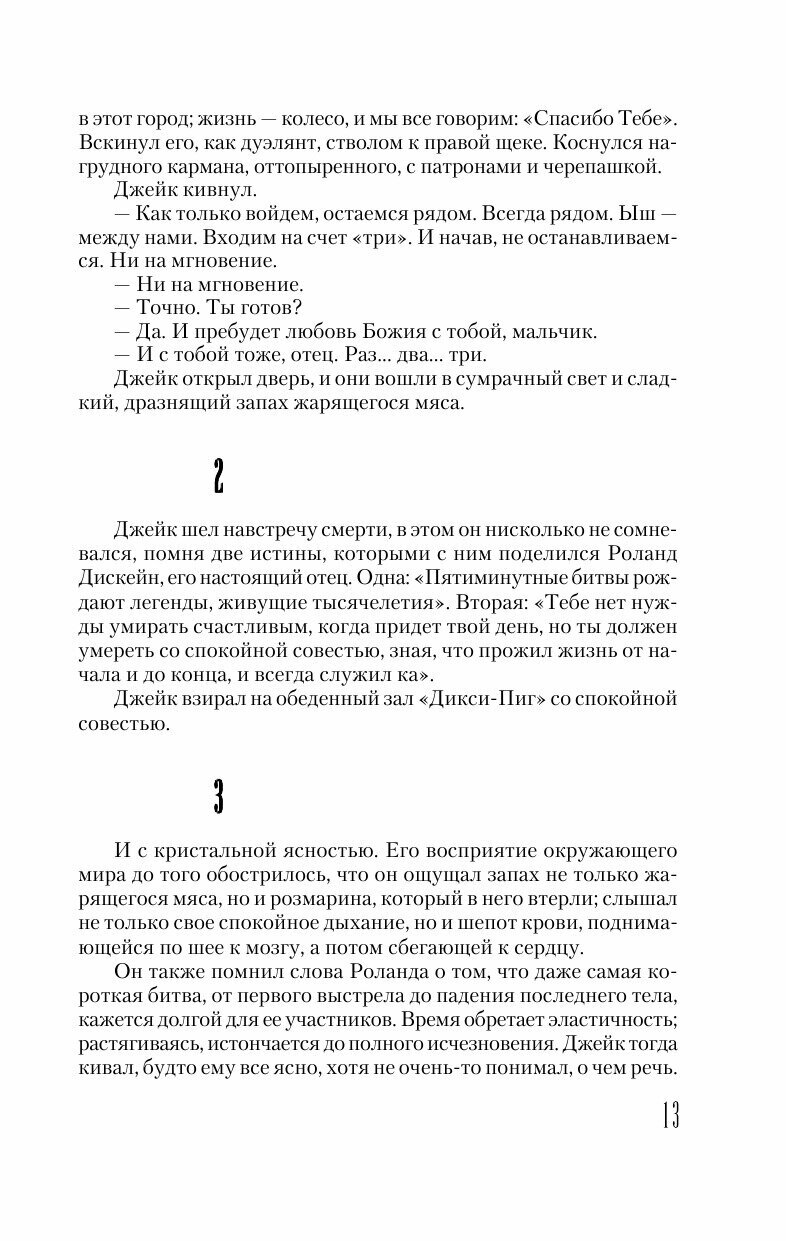 Читать, конечно, следует весь цикл сначала, и только потому эту, финальную книгу. Мне кажется, Кинг написал её уже просто потому, что должен был закончить историю Роланда и удовлетворить всех многолетних поклонников цикла, во-всяком случае, я уже читала, как про персонажей компьютерной игры, без тревог за героев, понимая, что у всего должен быть свой спокойный финал, накал страстей после стольких книг, трудно себе представить. С другой стороны, Кинг остаётся мастером, у него всё в порядке с языком, он умеет закрутить интригу, финал такой, не совсем ожидаемый, но самый лучший в обстоятельствах Срединного мира. Короче, эту книгу надо покупать тем, кто хочет узнать, чем кончились странствия Роланда. Либо поклонникам Кинга, которые не слыхали раньше об этой саге и готовы прочитать все старые тома, прежде чем купить этот новый. Я так и сделала.