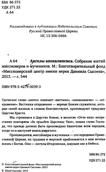 Ангелы апокалипсиса. Собрание житий миссионеров и мучеников (Скрябина О., Бучнина С. (ред.-сост.)); Миссионерский центр им. Сысоев, 2013