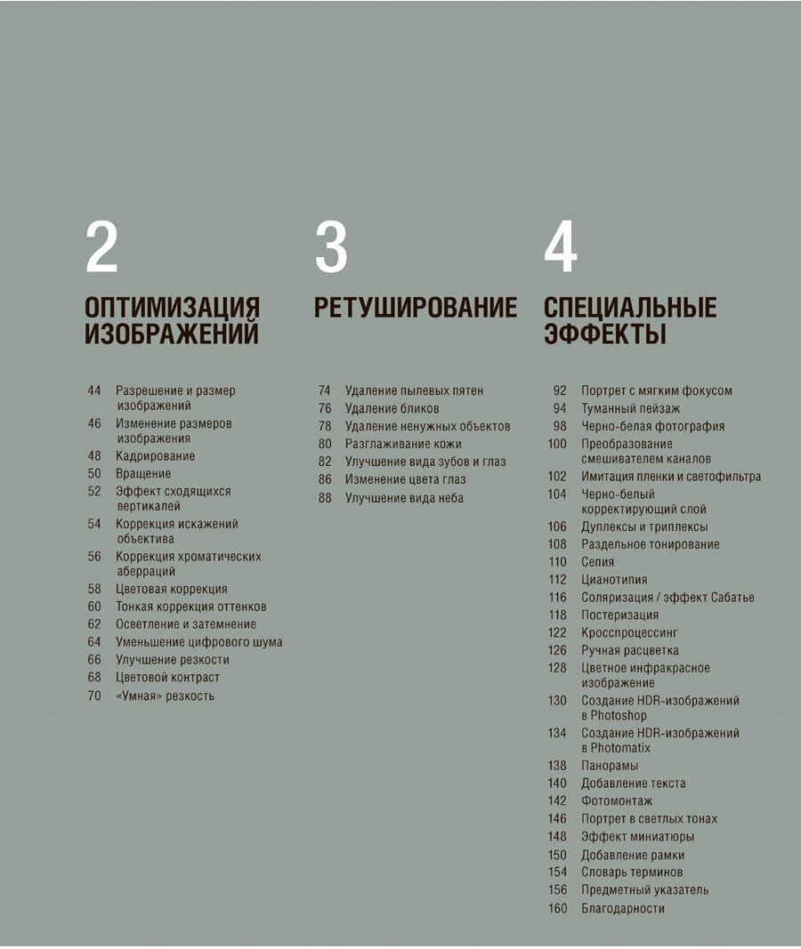 Более 200 цветных фотографий и иллюстраций с подробным анализом приемов цифровой обработки, показывающим, как и почему фотографии получаются удачными, помогут вам выбрать наилучший инструмент для обработки каждого снимка.