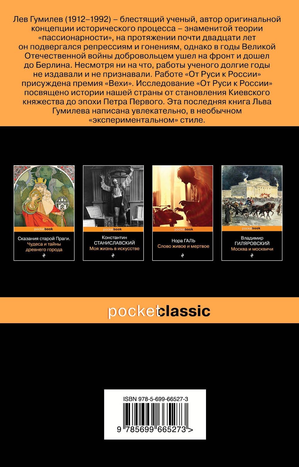 Работе "От Руси к России" присуждена премия "Вехи". Исследование "От Руси к России" посвящено истории нашей страны от становления Киевского княжества до эпохи Петра Первого. Эта последняя книга Льва Гумилева написана увлекательно, в необычном "экспериментальном" стиле.