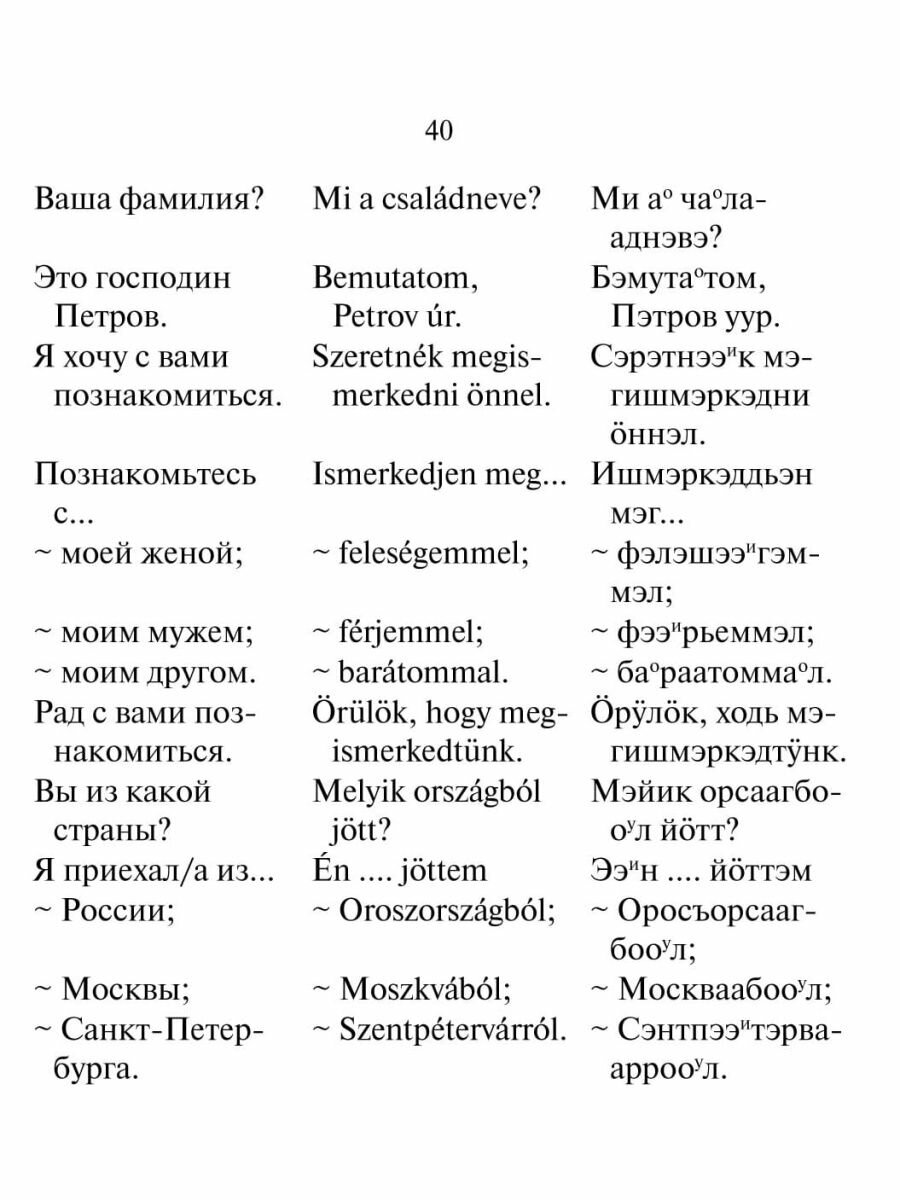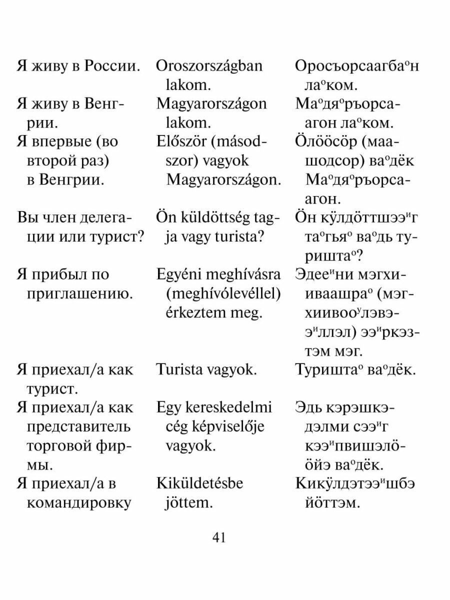 Я разочарован в этой книге. 30 страниц книги не касается обучения, рассказ о Венгрии. Для этого есть другая литература. Это к чему? К сожалению, сборник слов не позволит понять венгерскую речь на самом элементарном уровне. Не уверен, что эта книга поможет в общении с венграми. Есть, гораздо, лучшие издания. Жаль потраченных денег.
