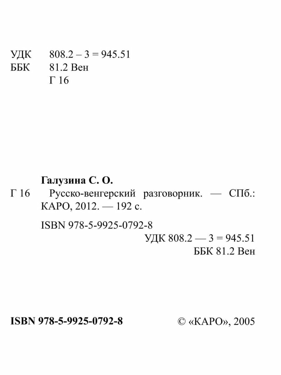 Цель разговорника - помочь тем, кто не владеет венгерским языком. В разговорник включены наиболее употребительные слова и выражения.
