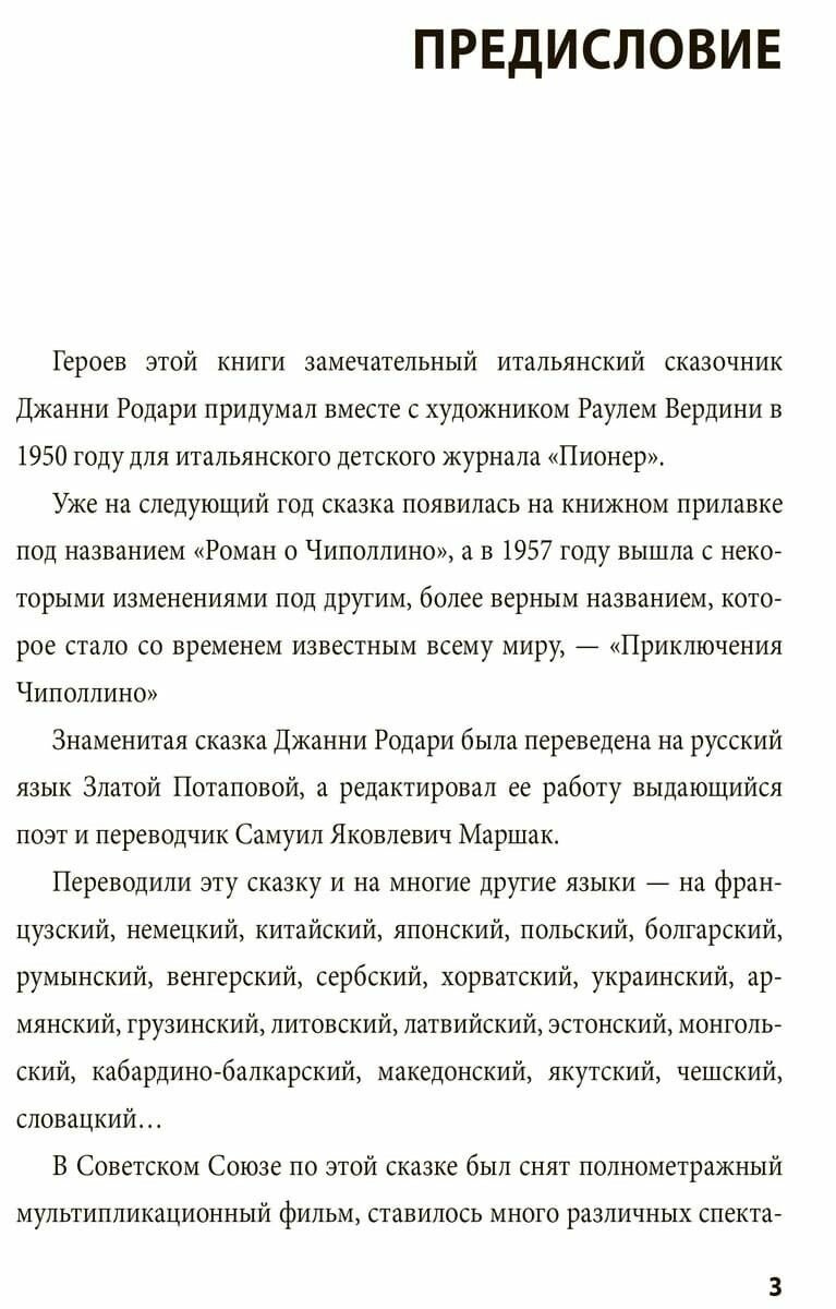 Предлагаемый читателю оригинал самой знаменитой сказки Джанни Родари предназначен изучающим итальянский язык и имеющим достаточно полное представление о грамматике и лексике. Эта книга поможет войти в разговорный язык, обогатить лексику и узнать много новых фразеологических оборотов.