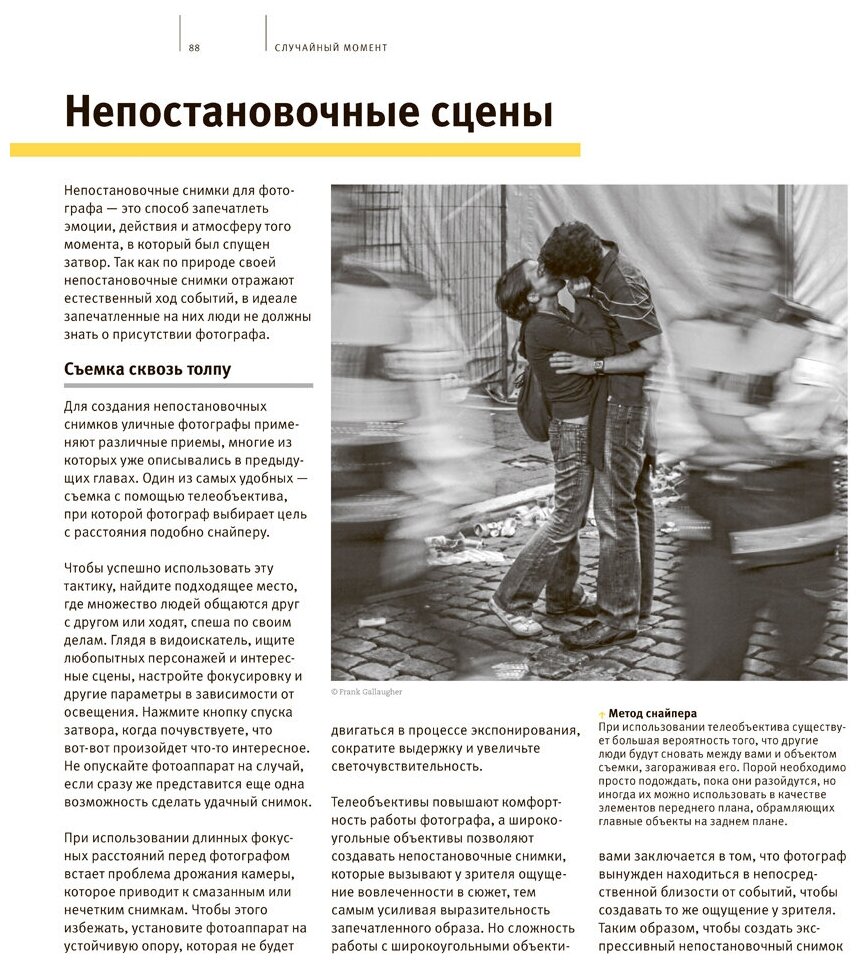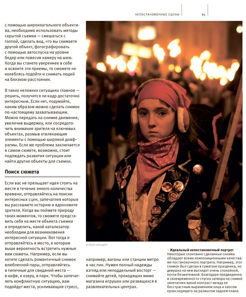 - Более 140 непостановочных и репортажных фотографий с подробным анализом творческих и технических приемов, использованных для их создания, показывающим, как и почему фотографии получаются удачными.