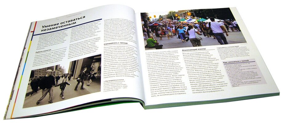 Основная масса фотографий, которые я сейчас делаю – это как раз и есть уличные фотографии, именно поэтому я решил купить именно эту книгу. Сначала идет речь о выборе объектива для каждой конкретной фотографии, потом подробно о различных технических аспектах: умение оставаться незамеченным (для получения реалистичной фотографии), сюжета, коррекции готовых фото. Очень удачная и интересная книга!