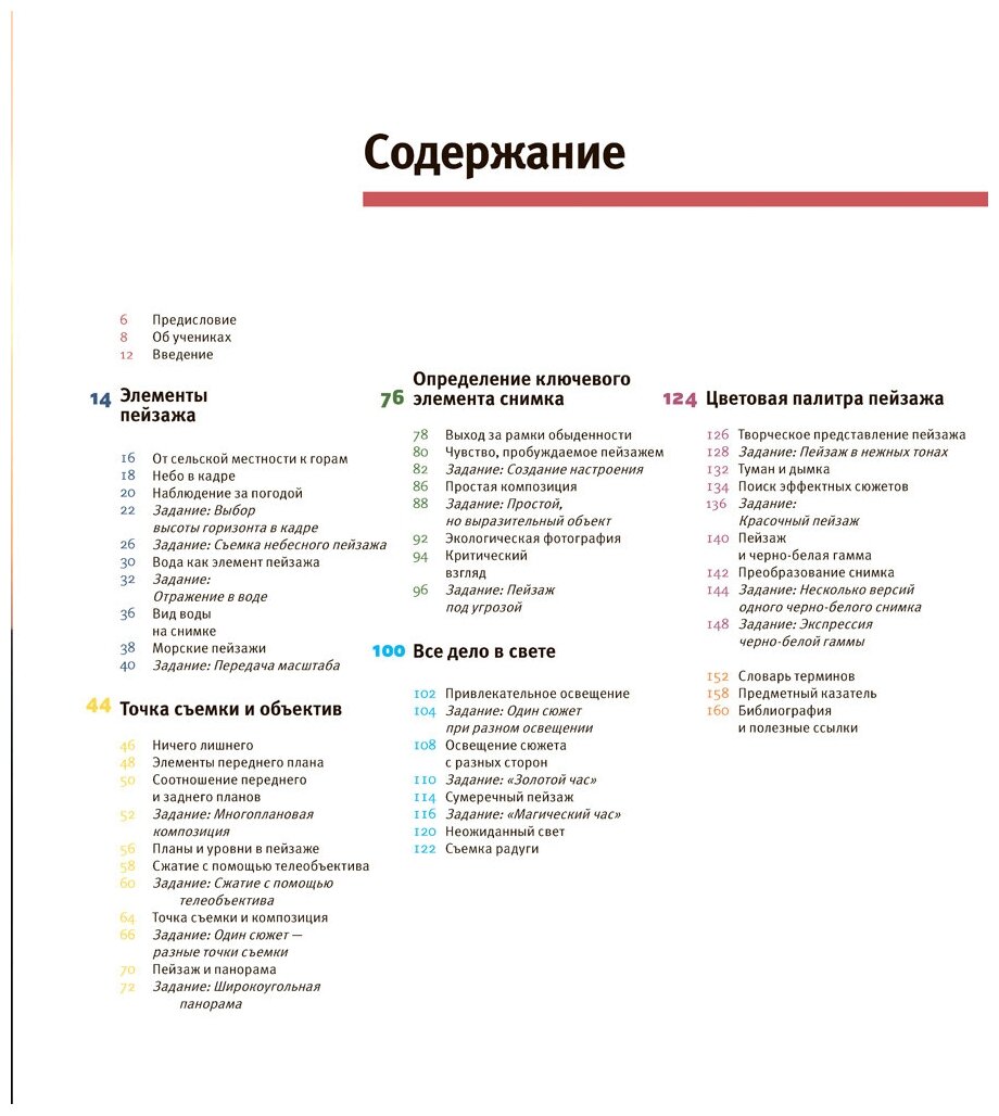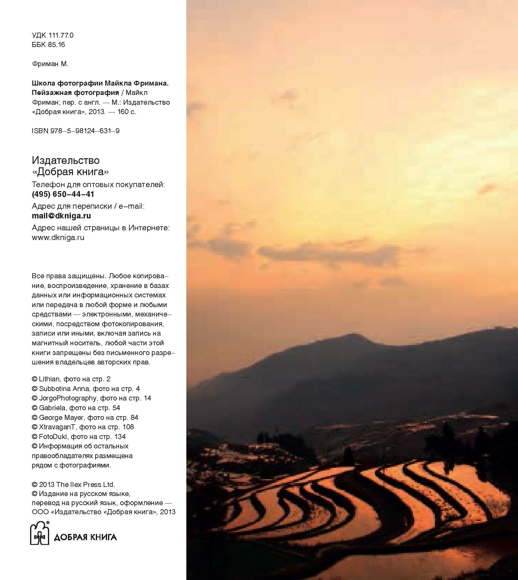 -Более 140 пейзажных фотографий с подробным анализом творческих и технических приемов, использованных для их создания, показывающим, как и почему фотографии получаются удачными.